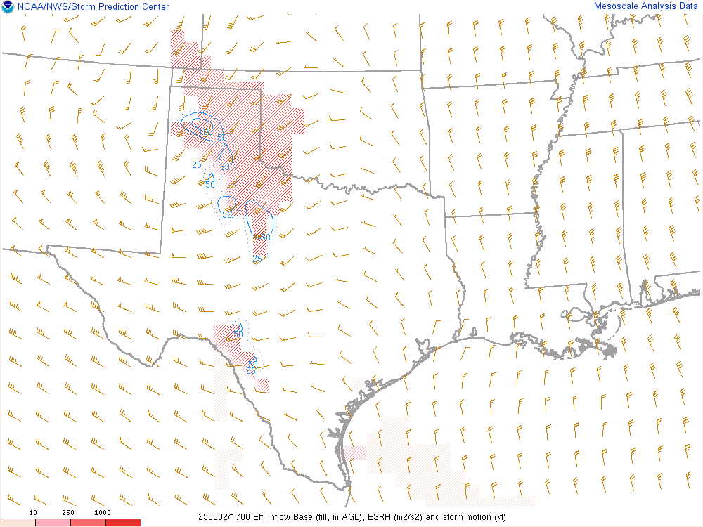 With an upper level low crashing into the panhandle, it would encounter mildly moist environment with dewpoints in the low 50s. Hail would definitely be the main threat, but storms would have some spin.