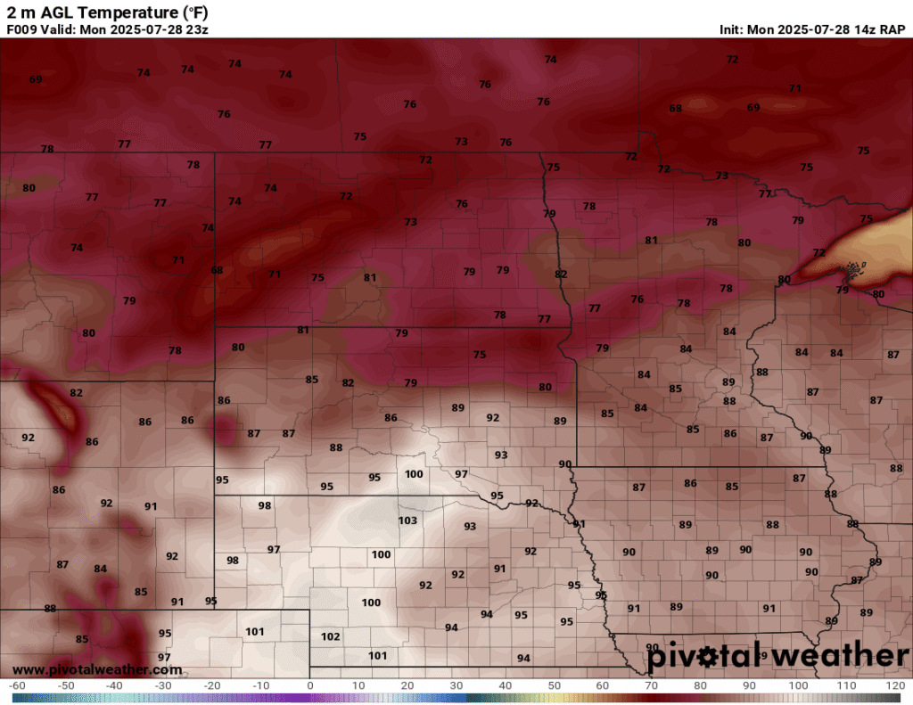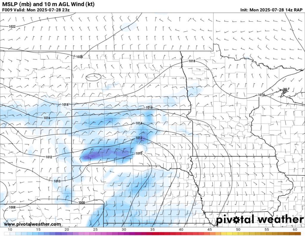 Between visiting the National Monument and work obligations, I became distracted. When I started moving west, the idea was to go to the Huron area or a little further west and/or north. Convective Initiation further southwest put me out of position big time. To compound the issue, I headed west out of Pipestone and continued through Madison and then tried to go through Salem. Road construction including a 15 minute wait for a pilot car and another long detour around Salem and back to I-90 cost me a lot of time.