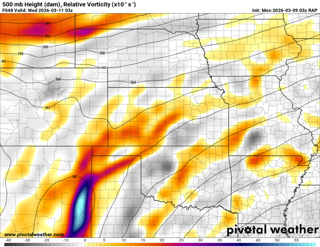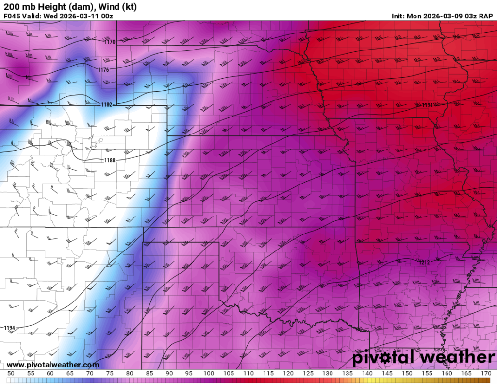 Looking out 2 full days, the evening RAP run on Saturday night March 7th (03Z on March 8) was showing the possibility of supercells in Central and Southern Oklahoma. With the main jet stream staying north, a cut off low over Northern Mexico and ejecting into Texas/Oklahoma in the late afternoon and evening hours. With the success I had with cutoff lows in 2012, I couldn’t ignore this system in the Southern Plains.
