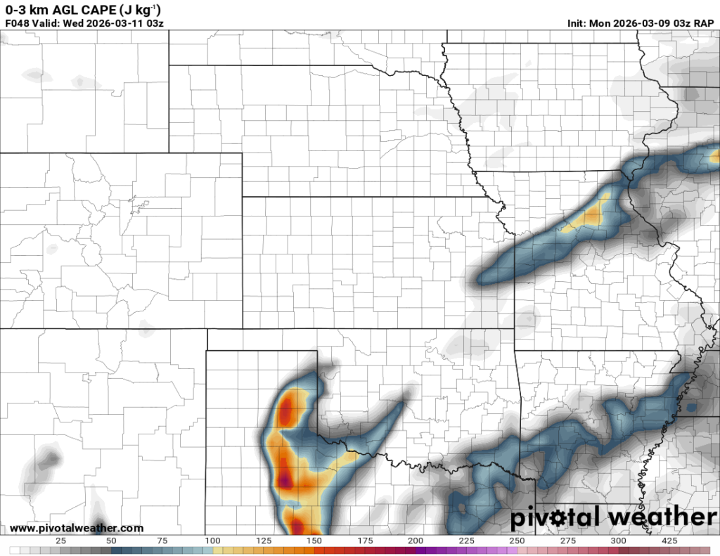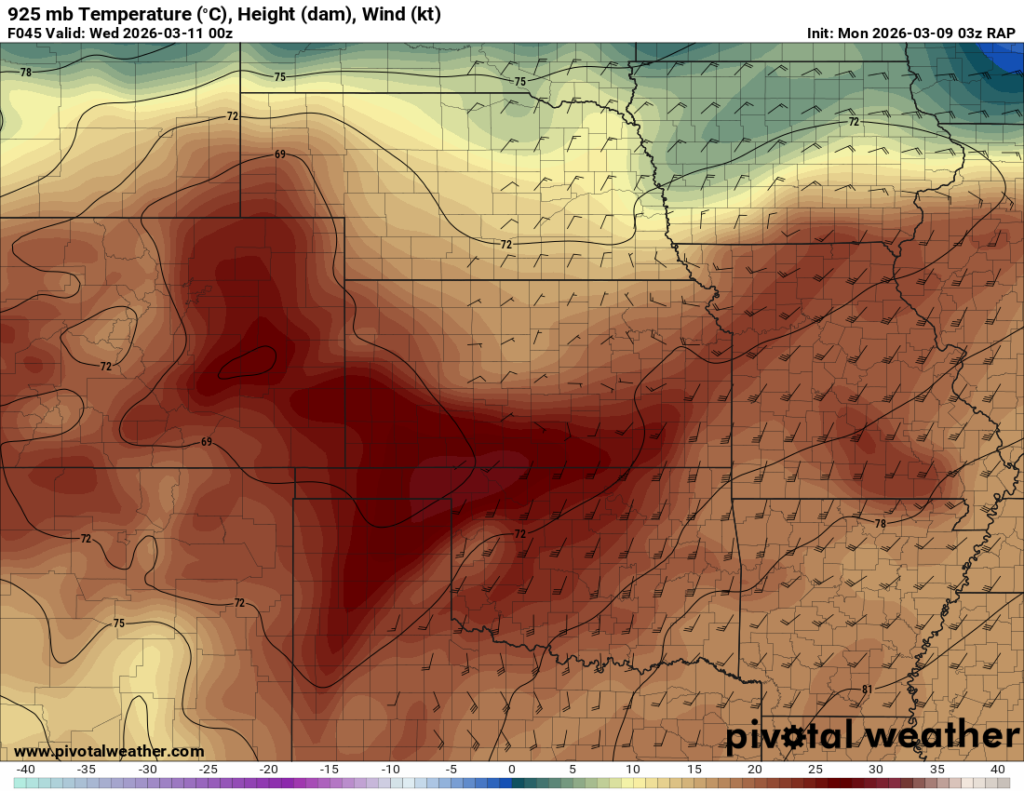 Running through the RAP, it had some weird chunk out of moisture/instability in Central Oklahoma. It was assuming there would be convection ongoing that would clear the warm sector. If that’s the case, this would be more in Eastern Oklahoma.