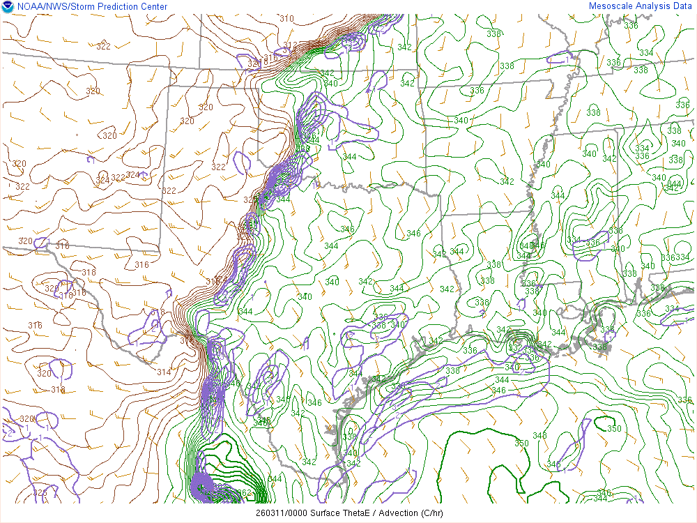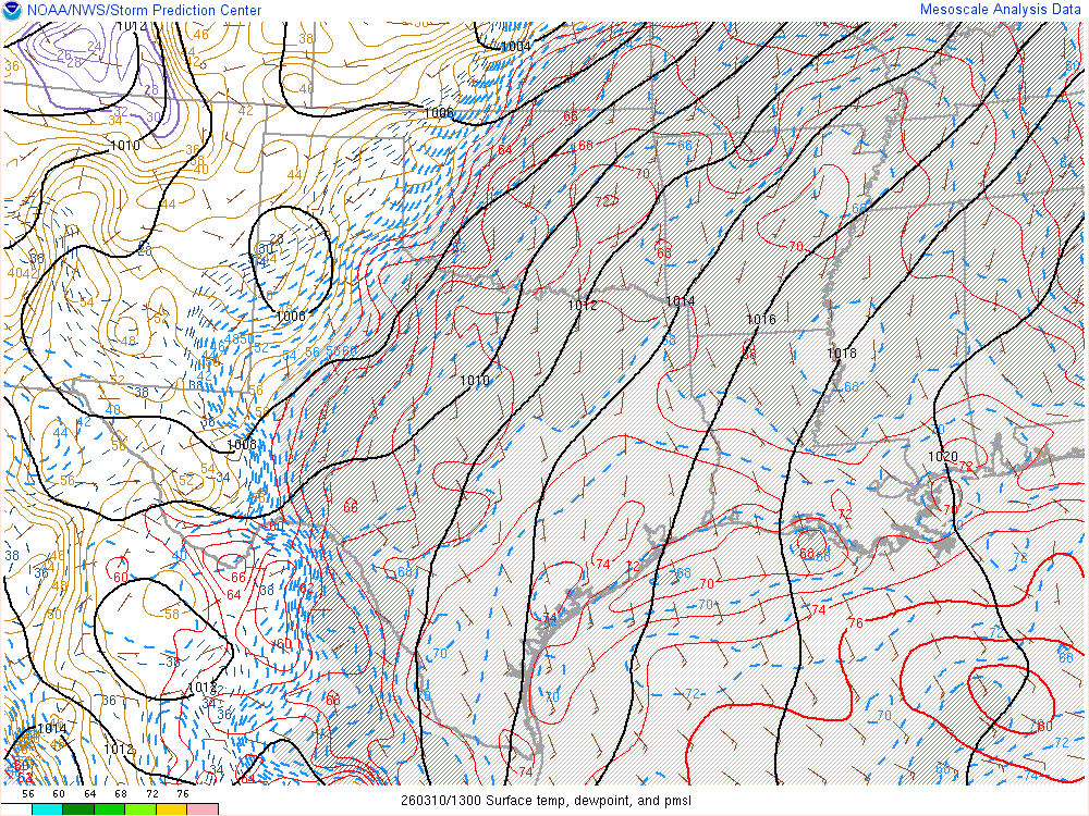 Moisture was very high for March. Dewpoints in the mid 60s were in place at 8am across the eastern 1/2 of Oklahoma.