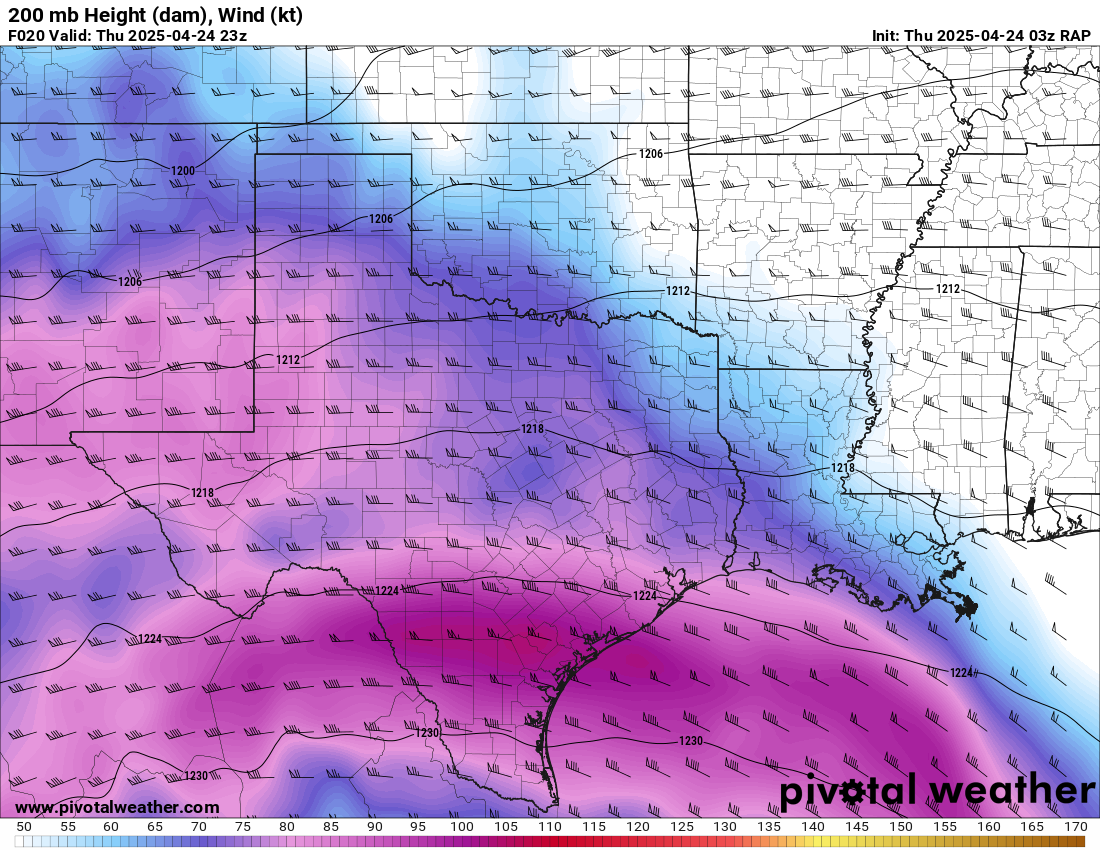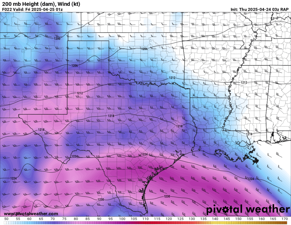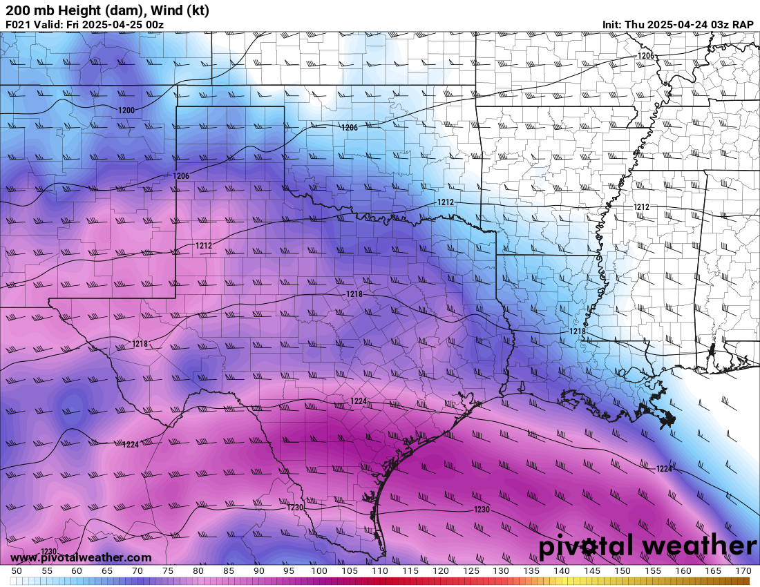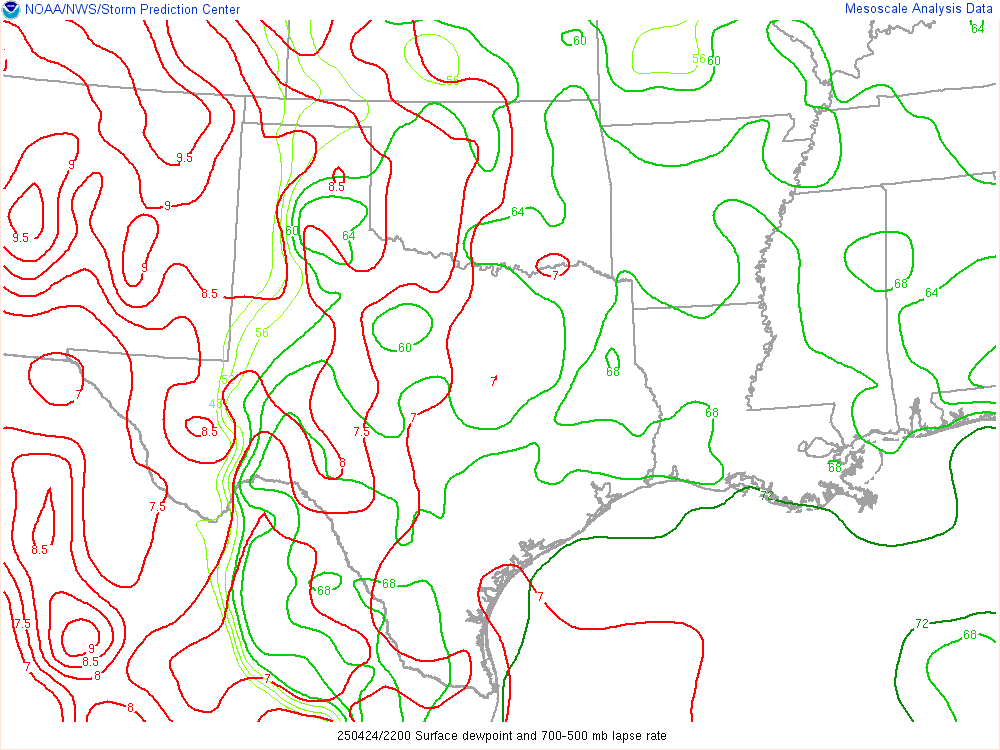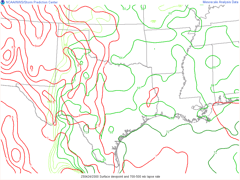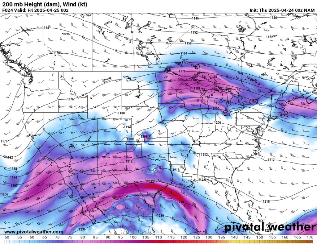 The 00Z NAM on the 24th reveals a low centered near Kenton OK and a strong impulse at 200mb across the texas panhandle. A dryline runs from the low in the panhandle south into Mexico.