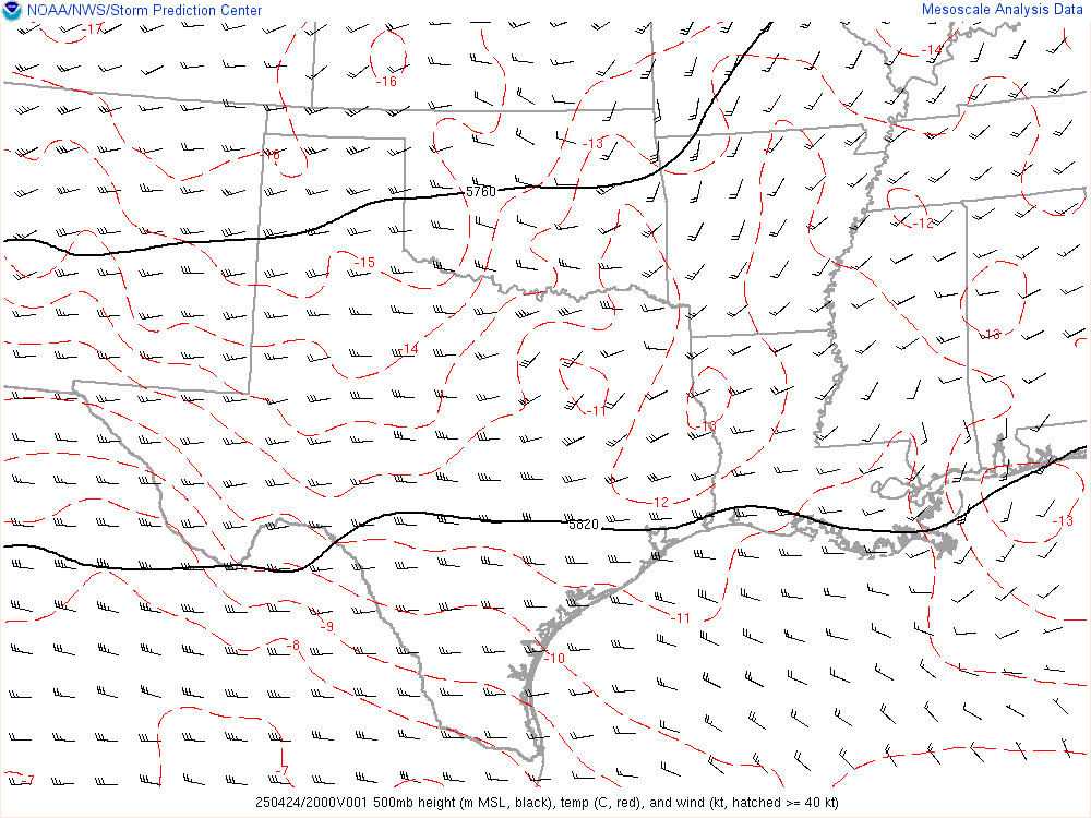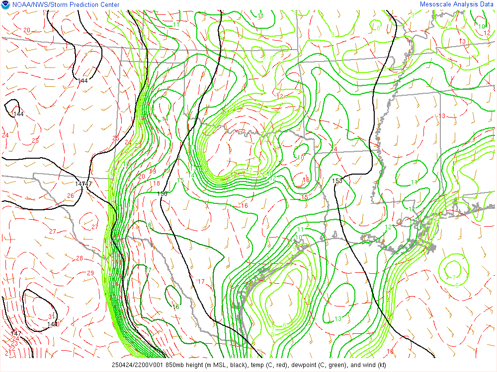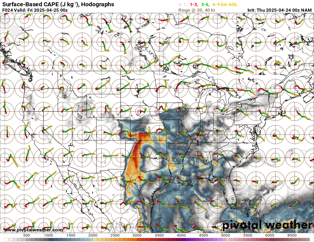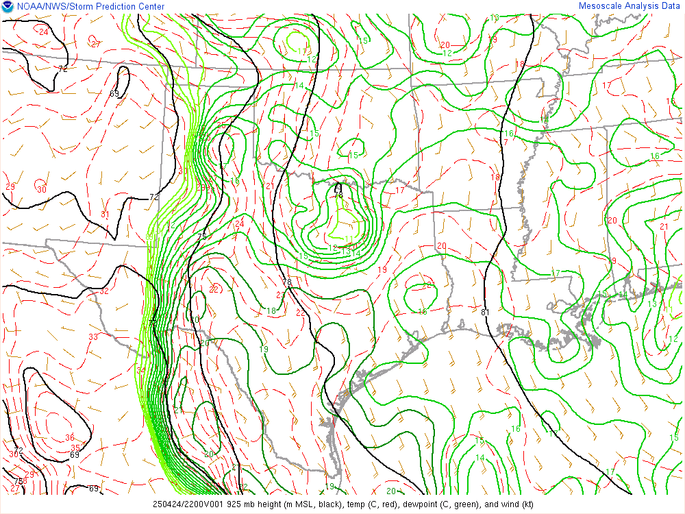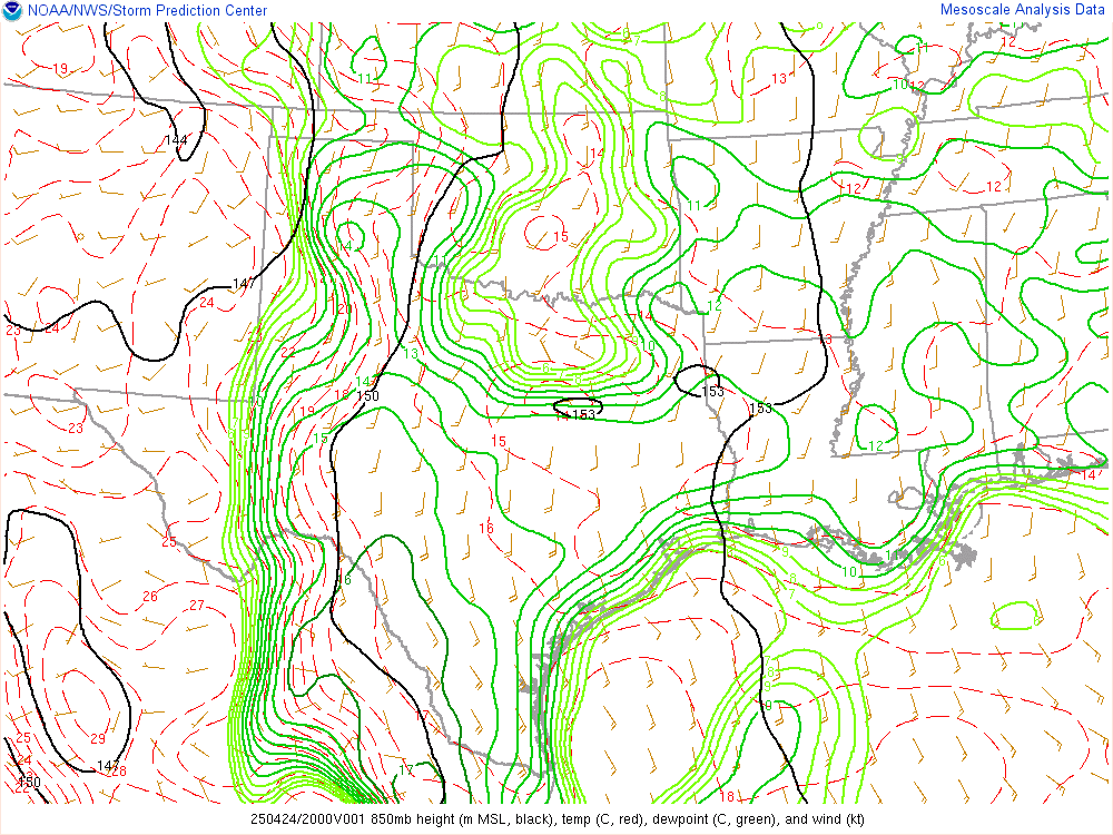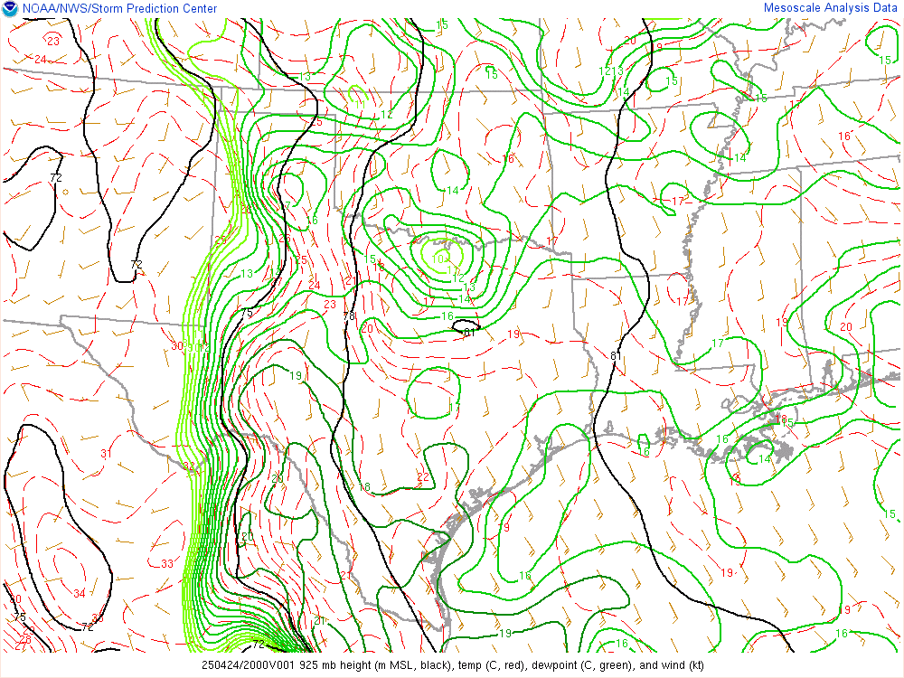 The 00Z NAM on the 24th reveals a low centered near Kenton OK and a strong impulse at 200mb across the texas panhandle. A dryline runs from the low in the panhandle south into Mexico.