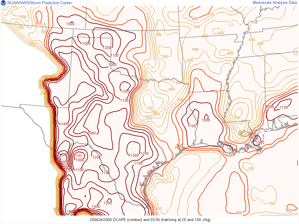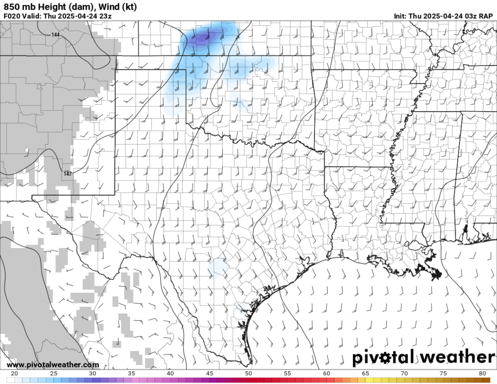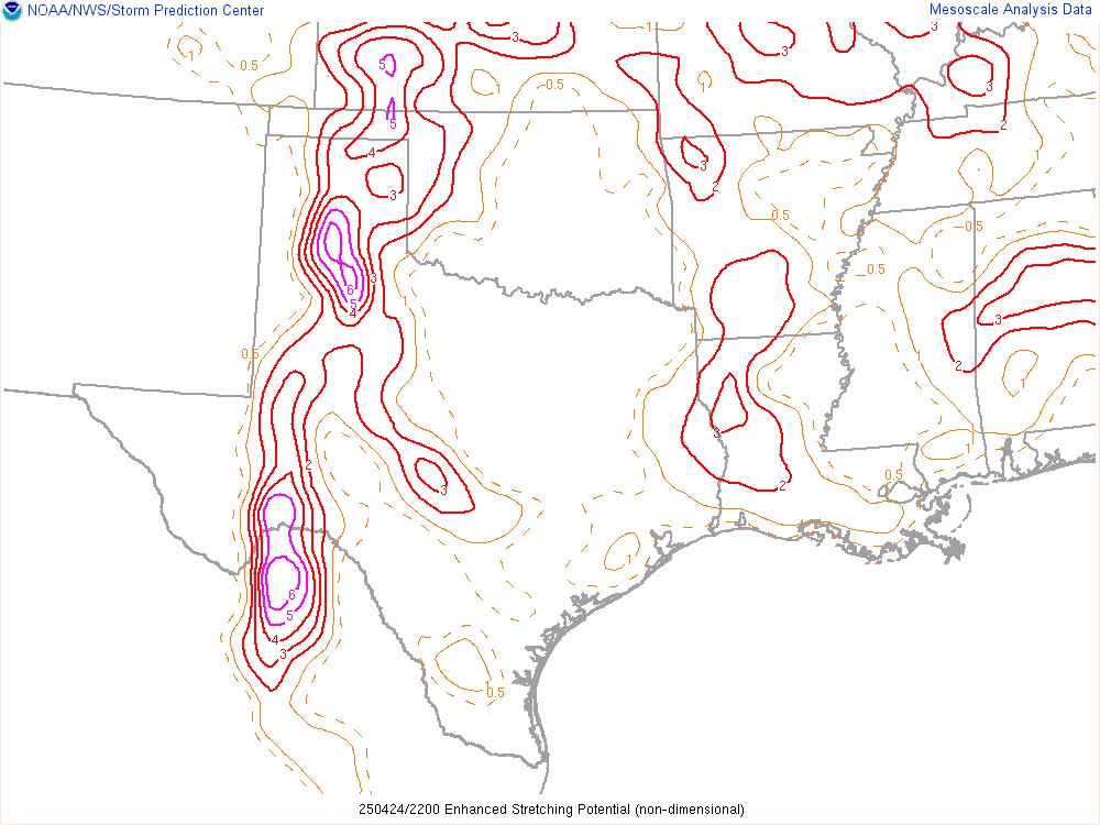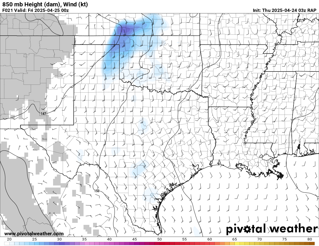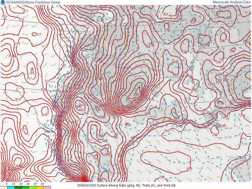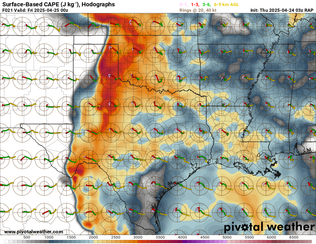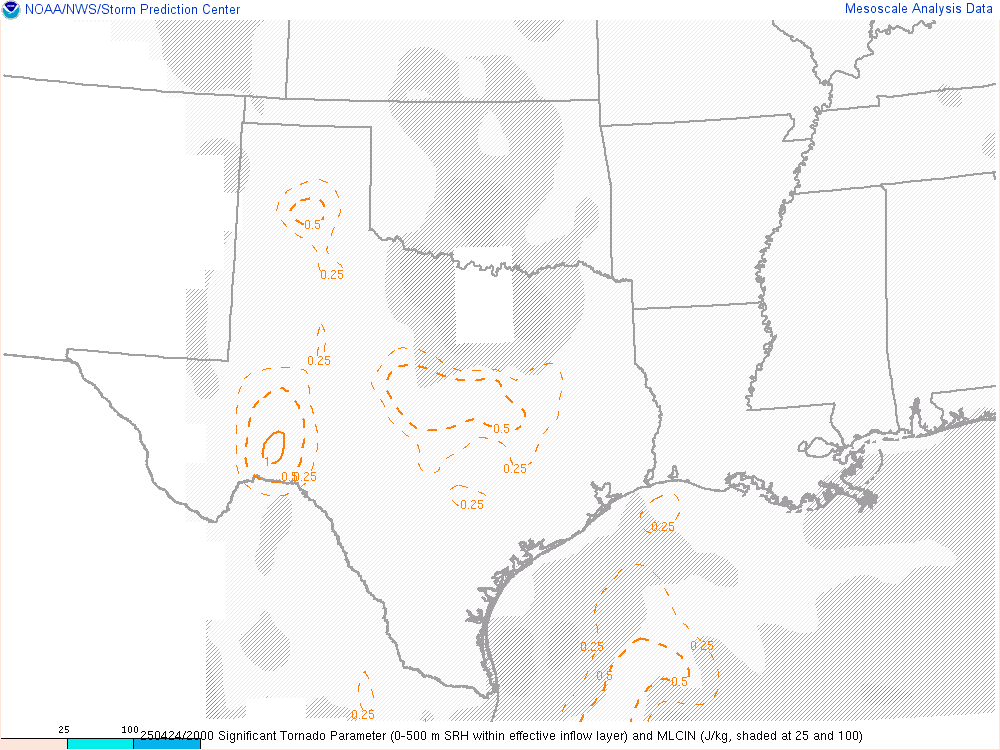 The 00Z NAM on the 24th reveals a low centered near Kenton OK and a strong impulse at 200mb across the texas panhandle. A dryline runs from the low in the panhandle south into Mexico.