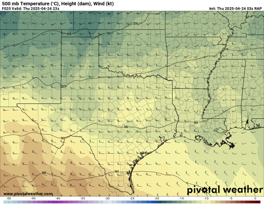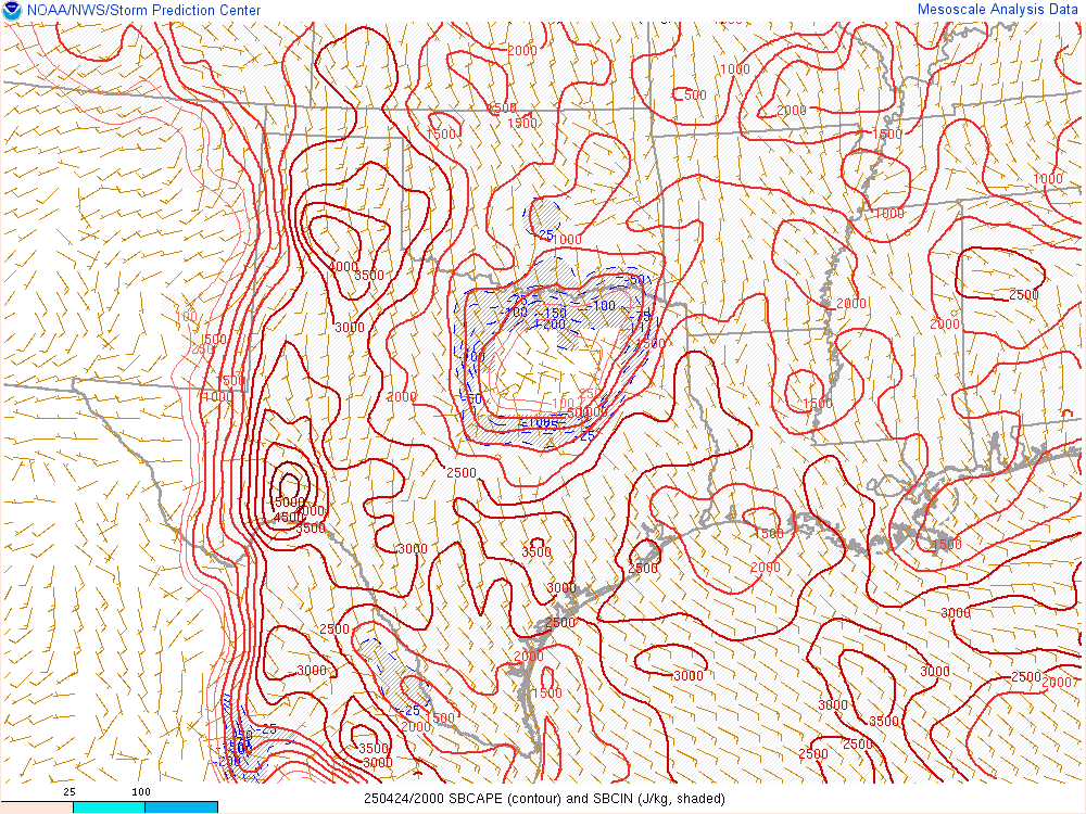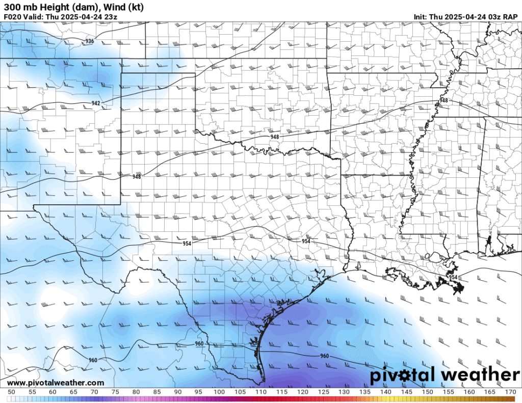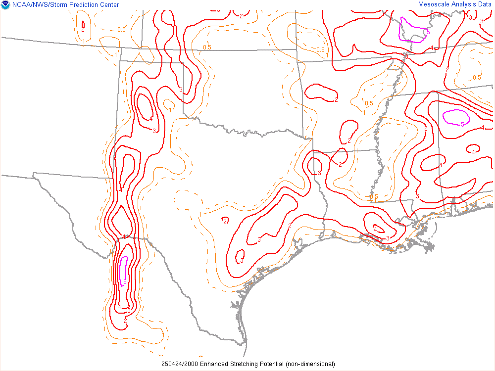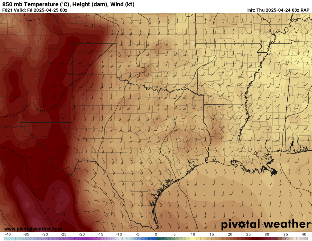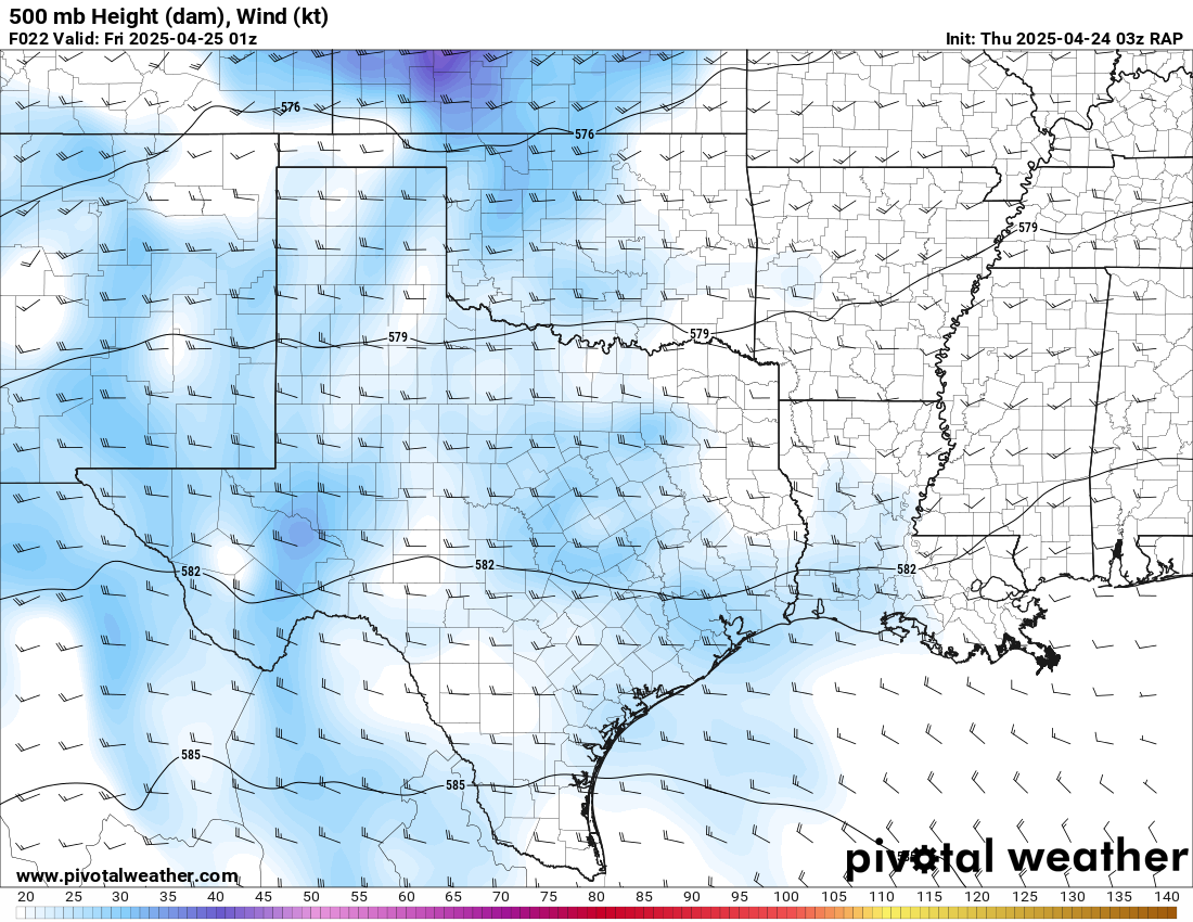 The 00Z NAM on the 24th reveals a low centered near Kenton OK and a strong impulse at 200mb across the texas panhandle. A dryline runs from the low in the panhandle south into Mexico.