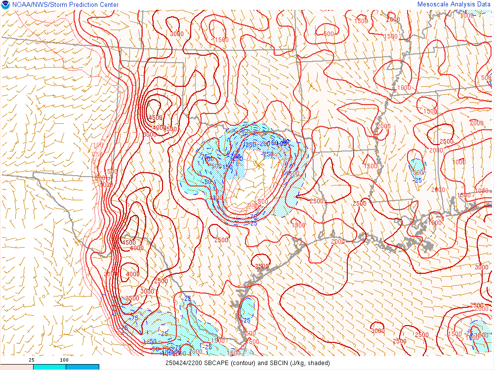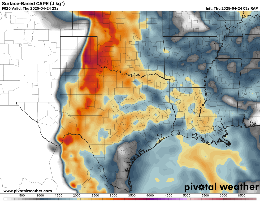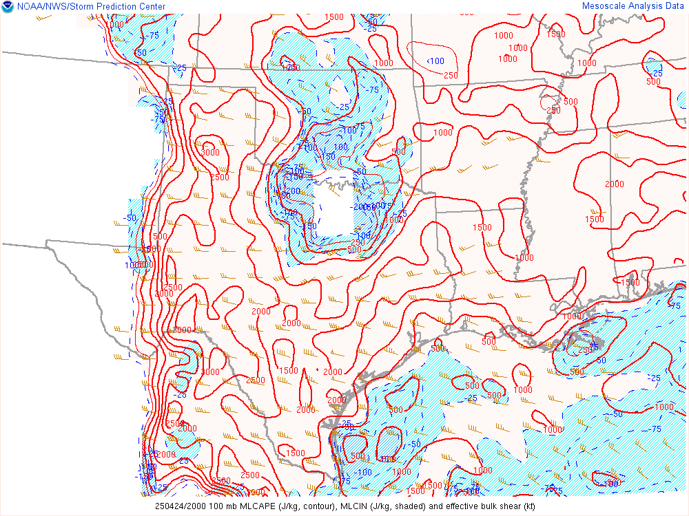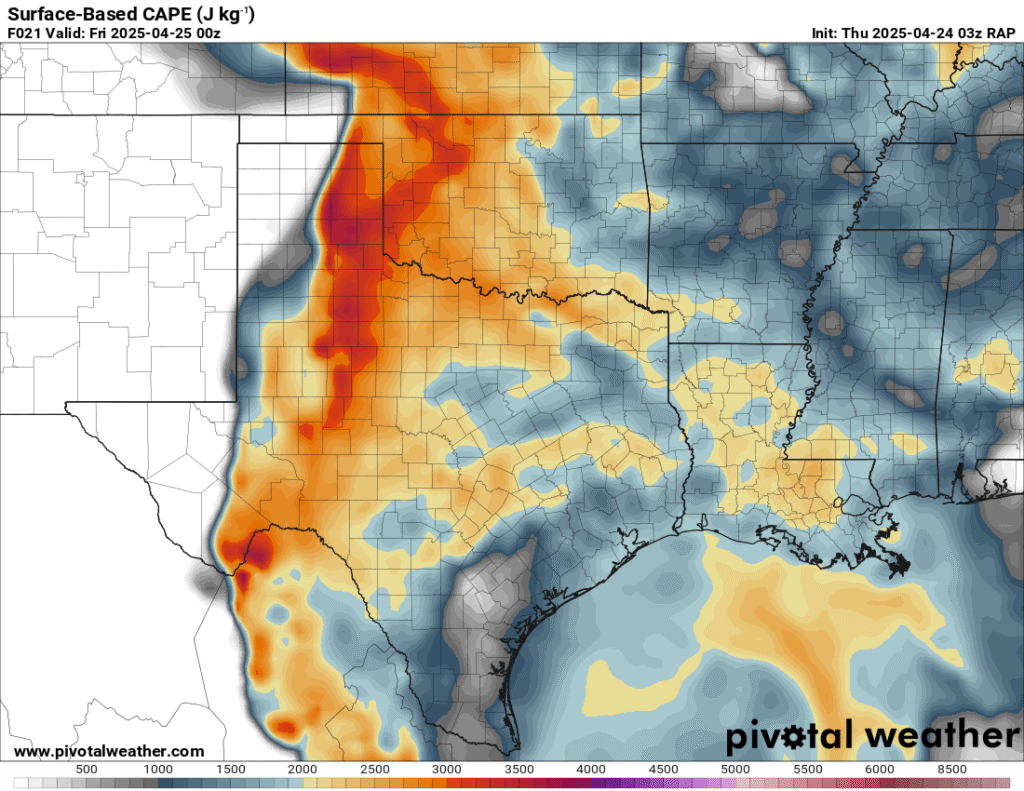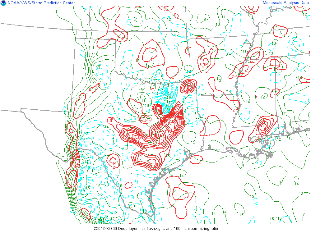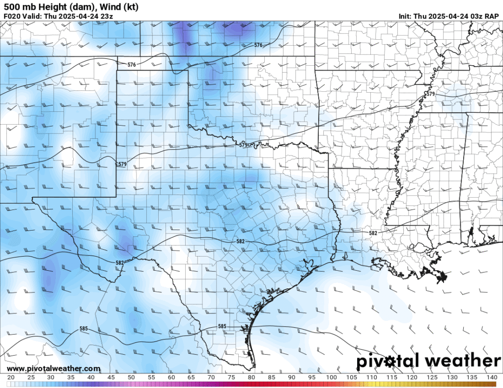 The 00Z NAM on the 24th reveals a low centered near Kenton OK and a strong impulse at 200mb across the texas panhandle. A dryline runs from the low in the panhandle south into Mexico.