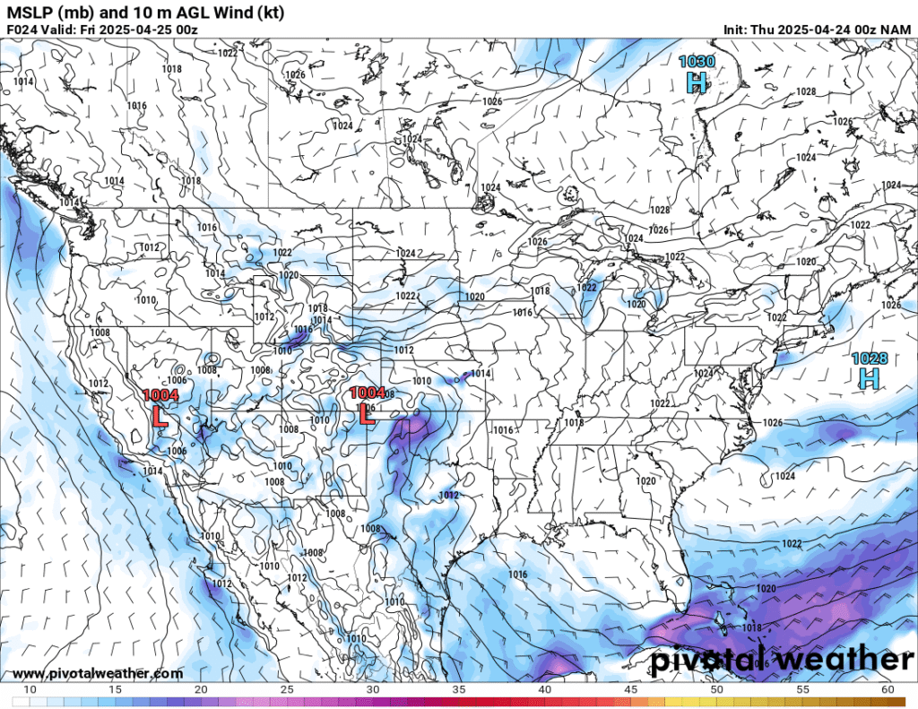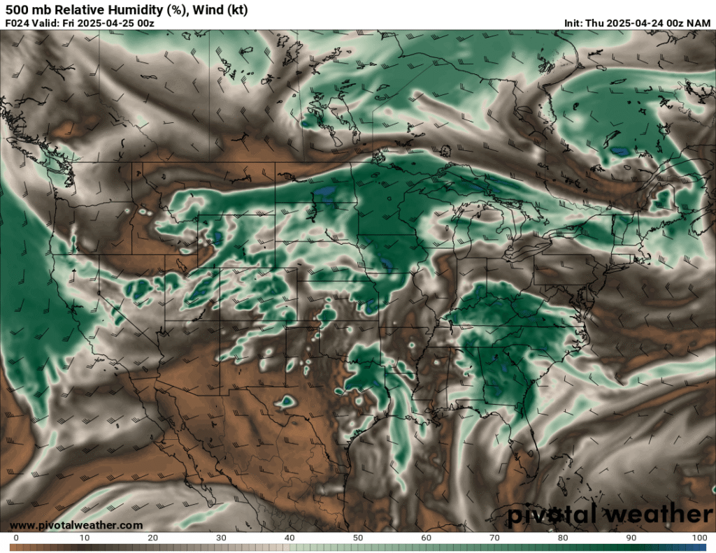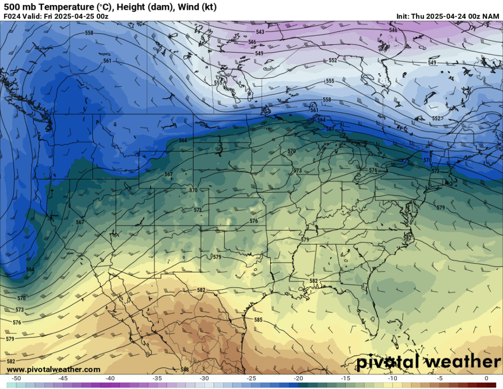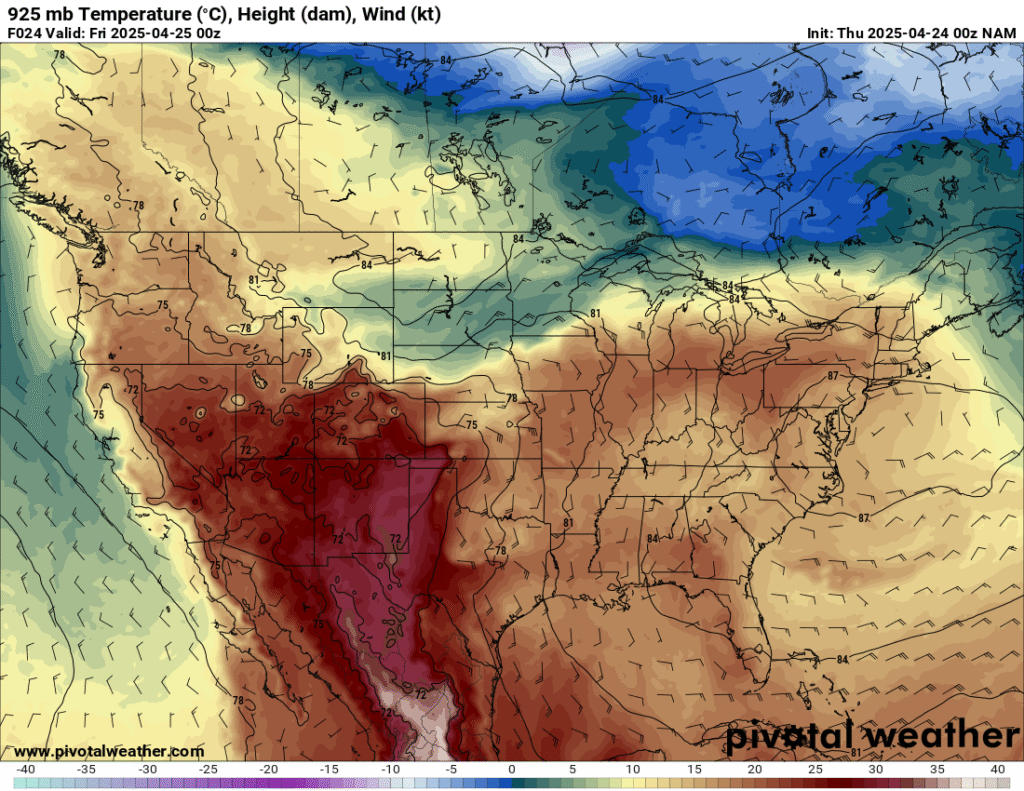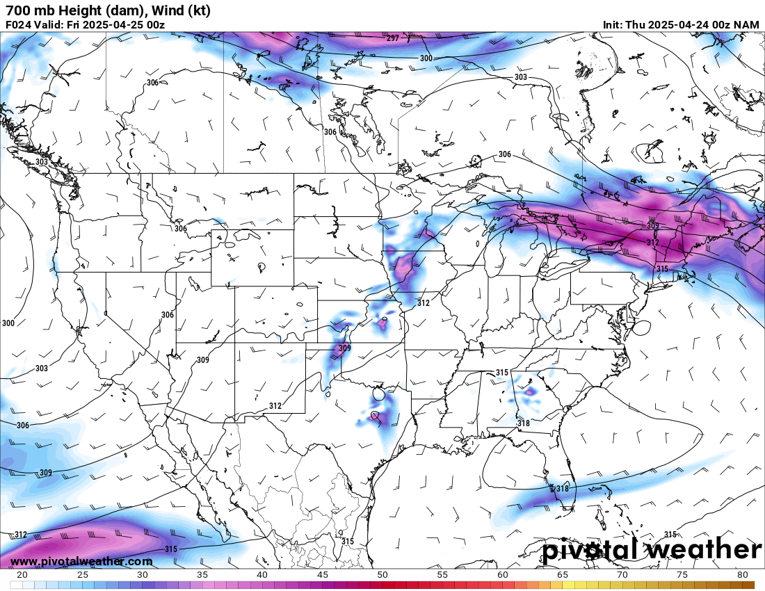 00Z NAM – 24 hour forecast for 7pm CDT April 24, 2025