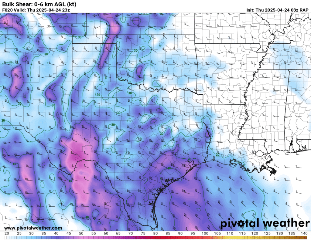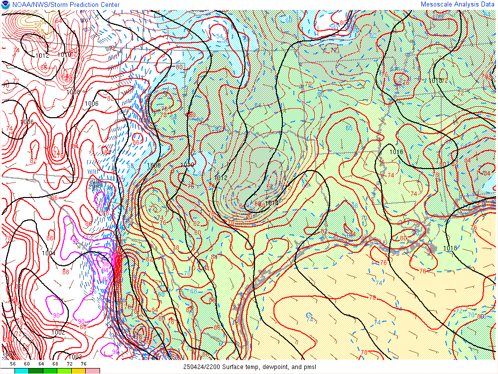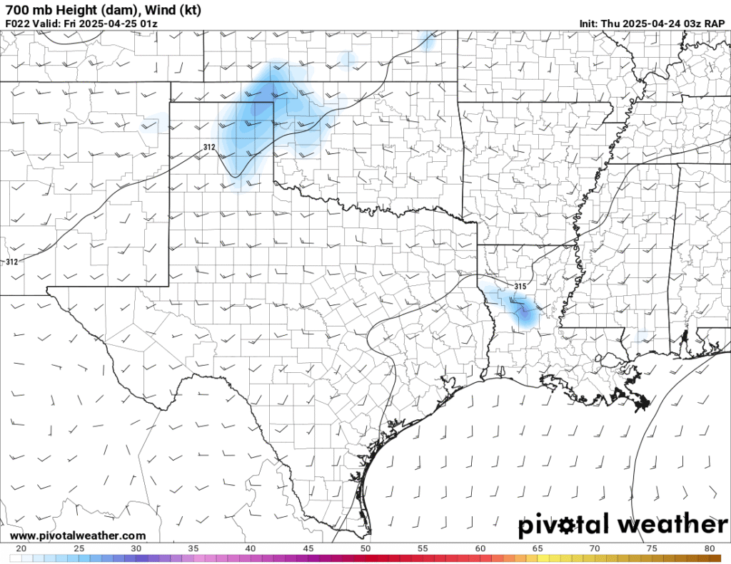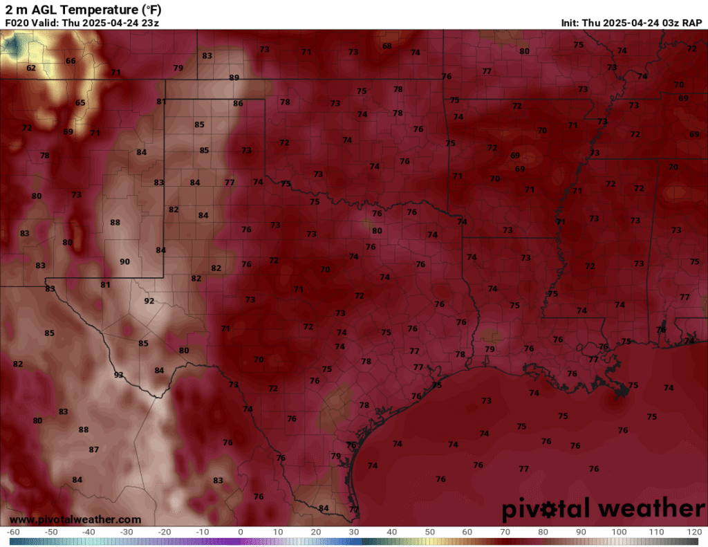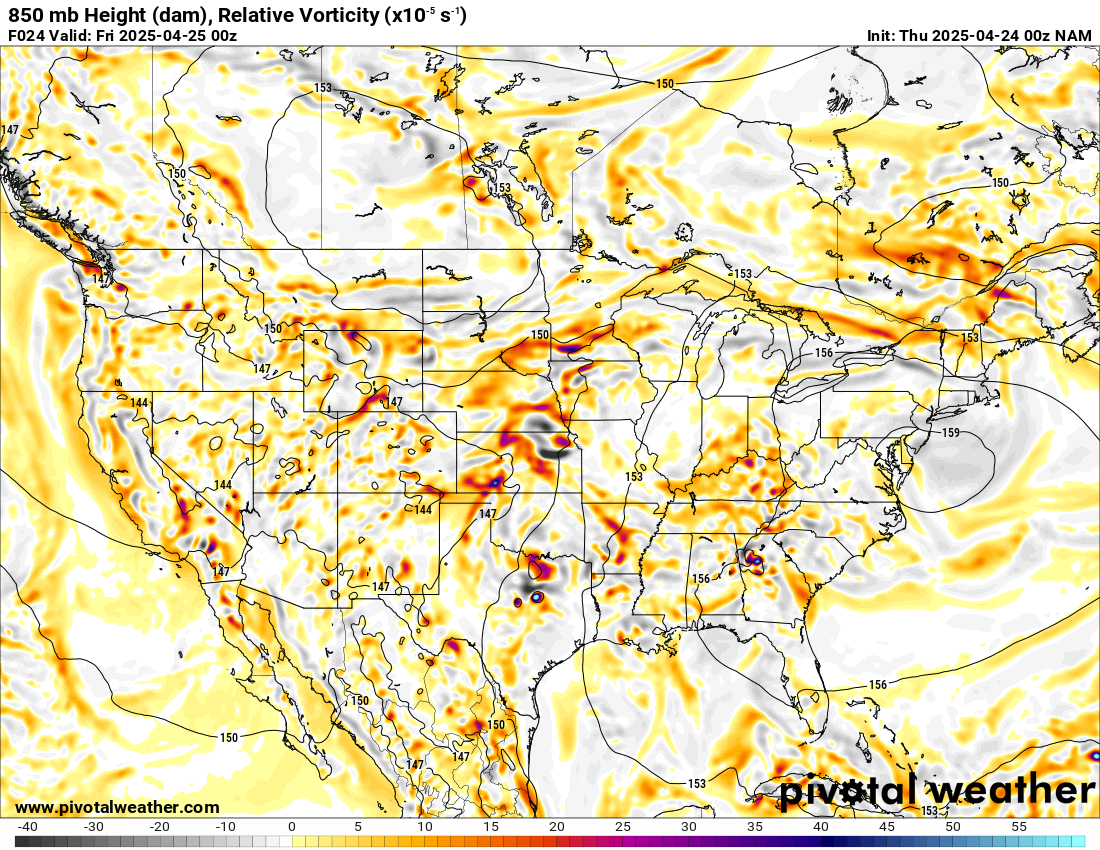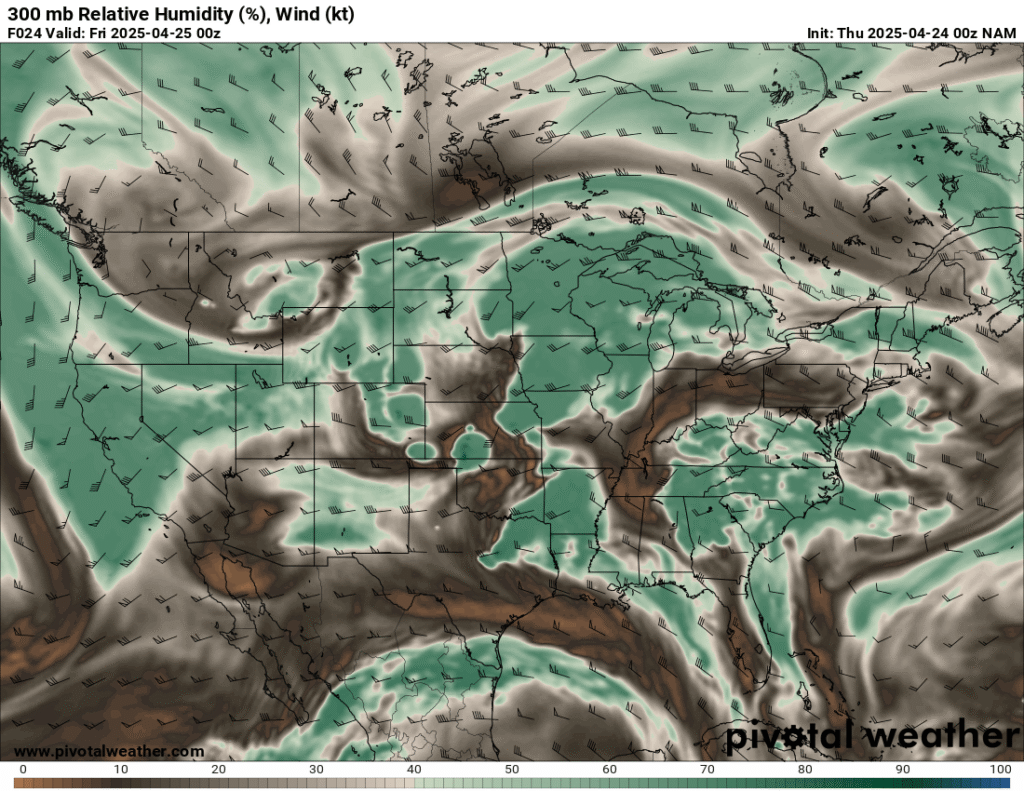 00Z NAM – 24 hour forecast for 7pm CDT April 24, 2025