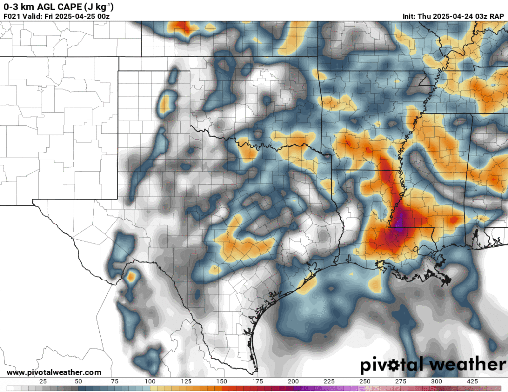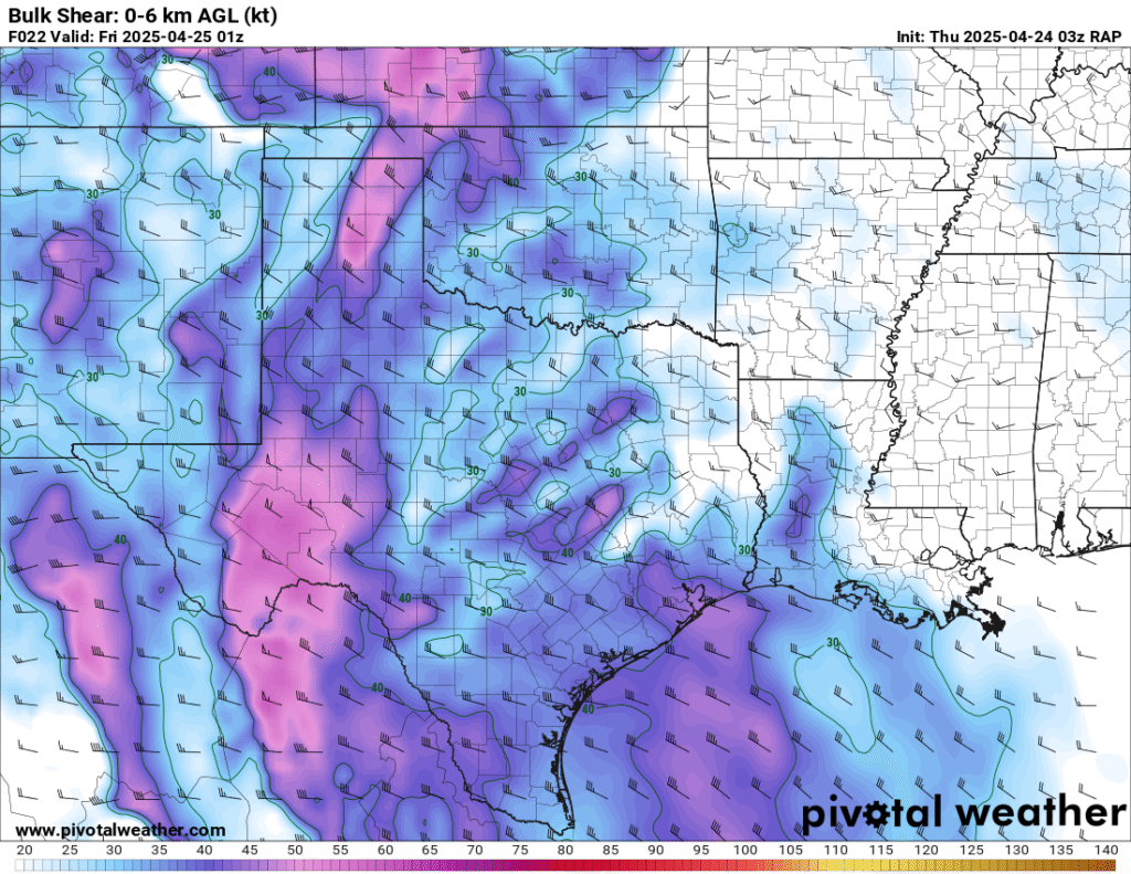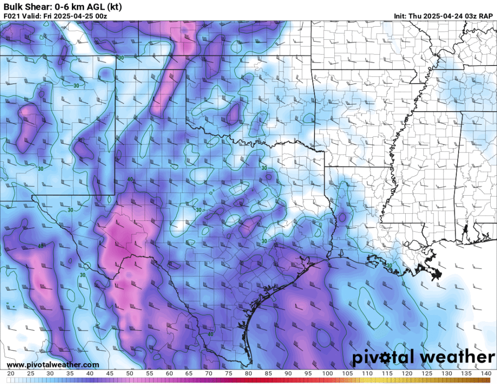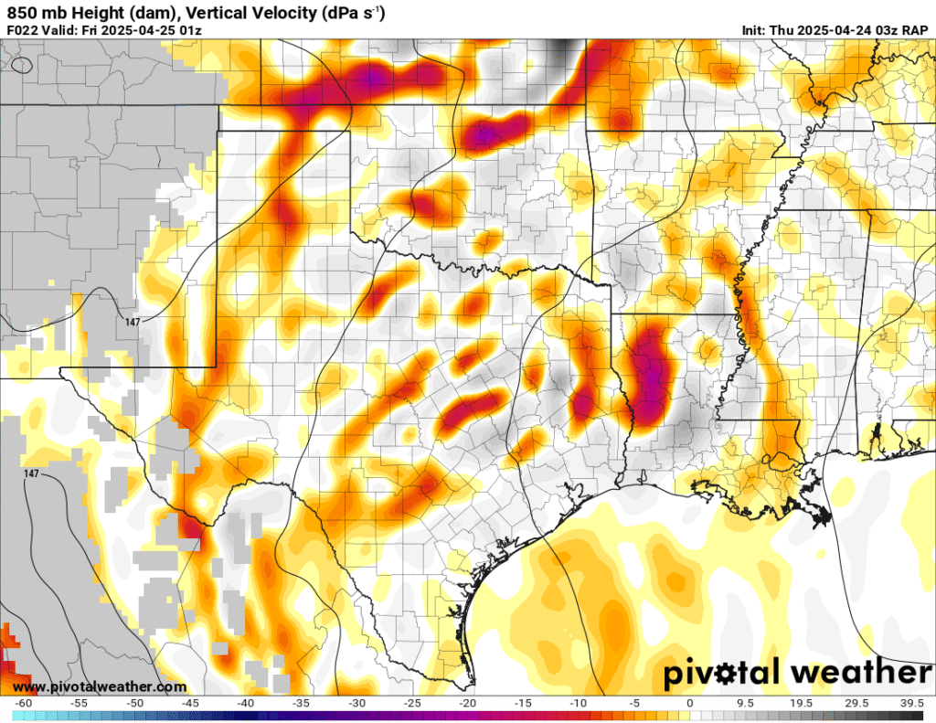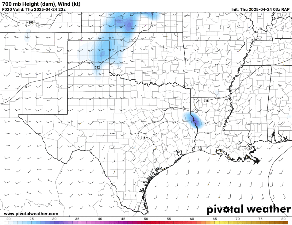 00Z NAM – 24 hour forecast for 7pm CDT April 24, 2025