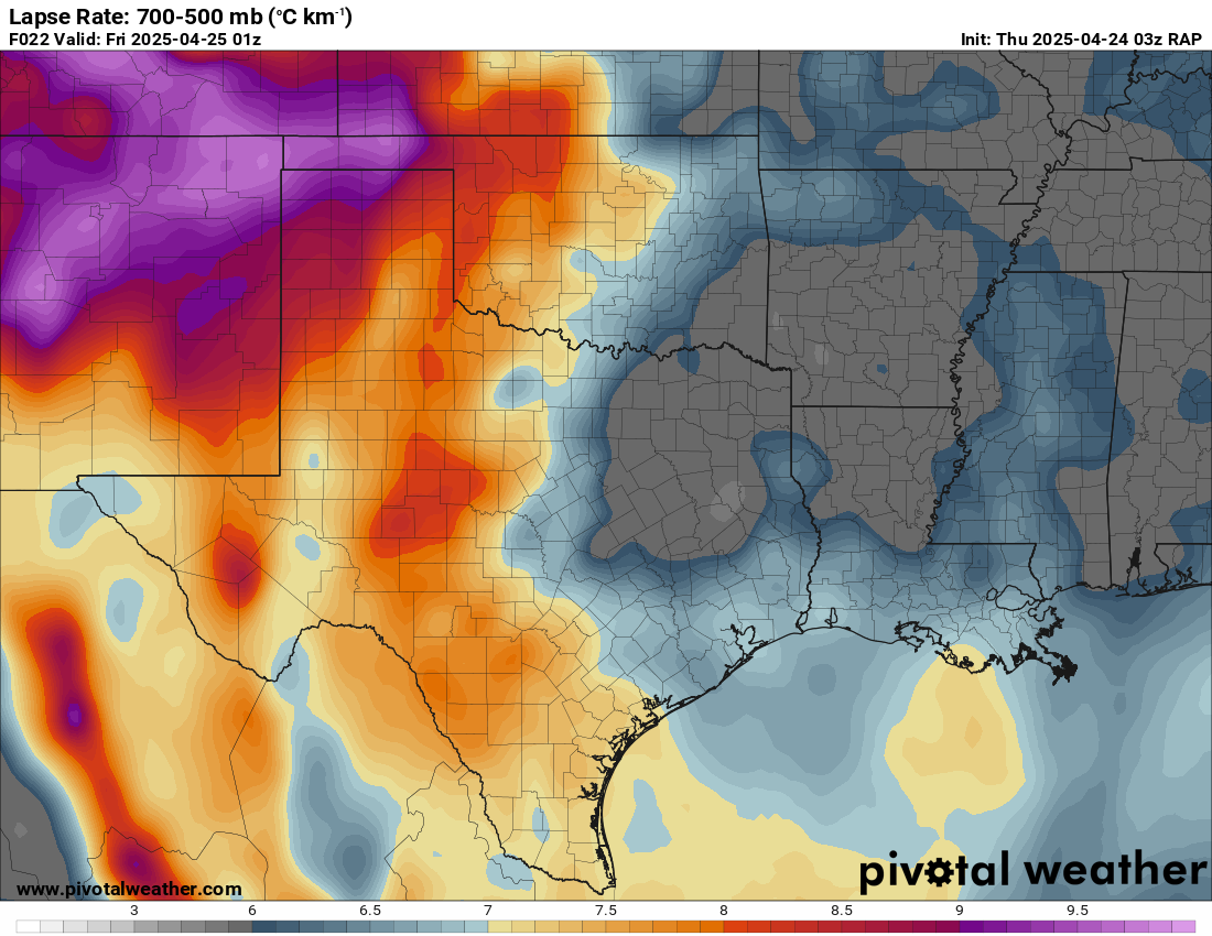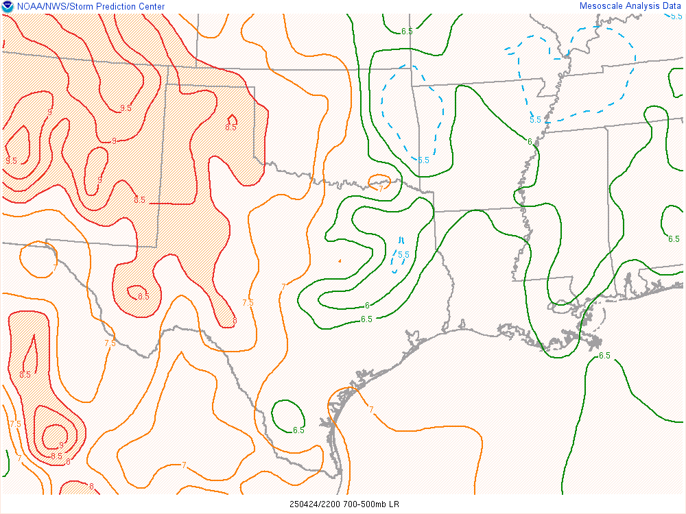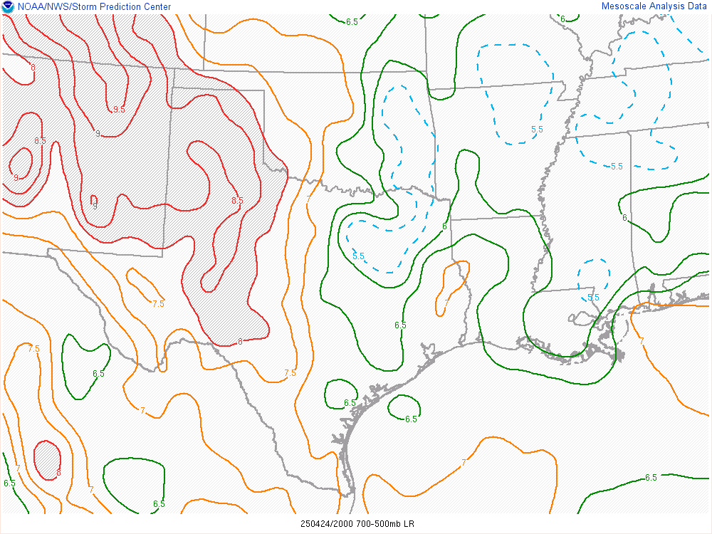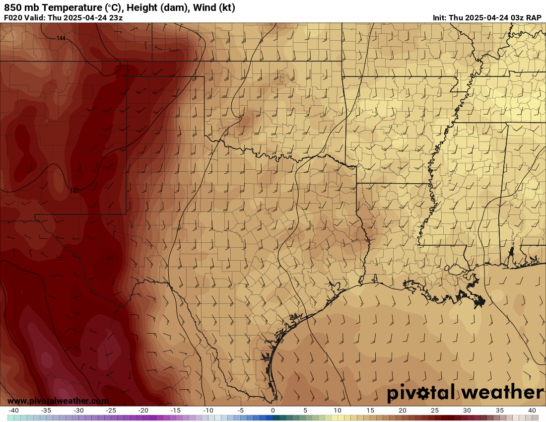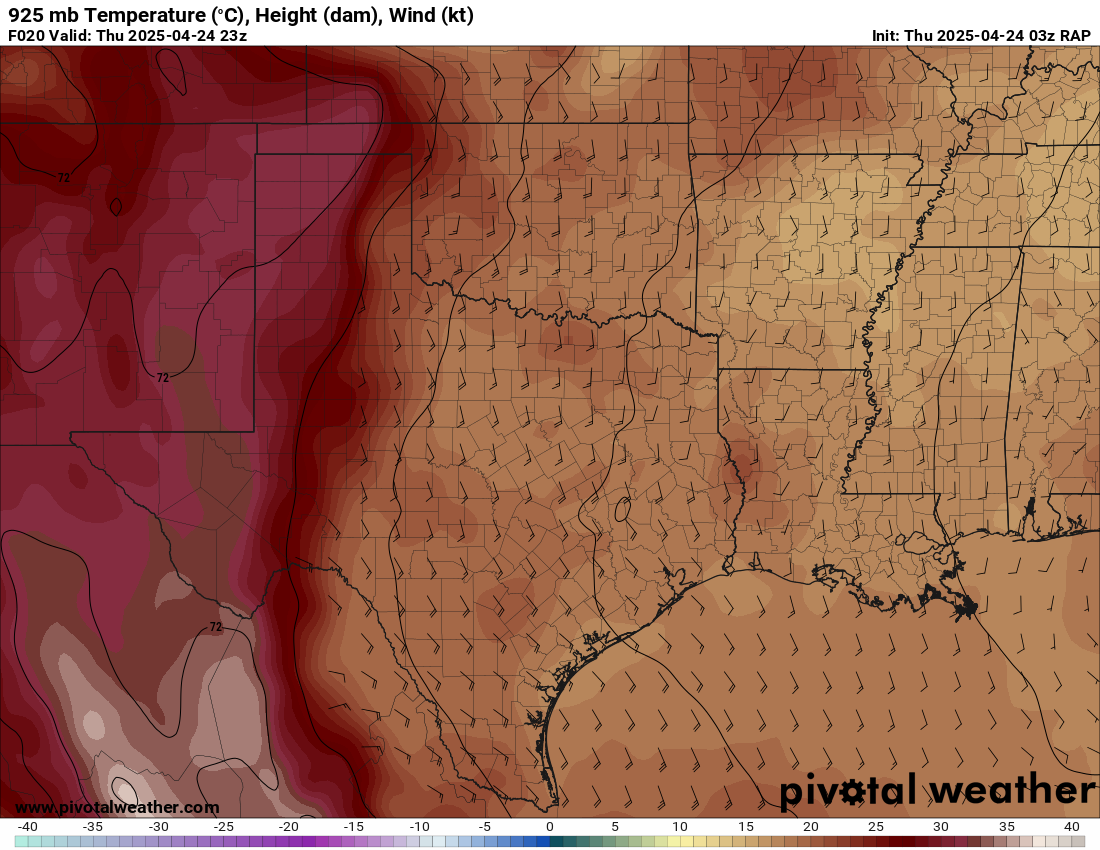 You can see the stable layer on the 12z Amarillo sounding. Above 750mb or so, lapse rates steepen up and flow turns generally westerly. Significant turning in the lower levels as the low deepens to the north. Fort Worth, Midland and Del Rio soundings all showing very good low level mixing ratios and deep moisture to work with.