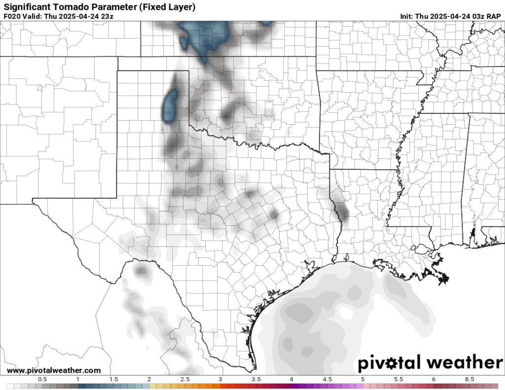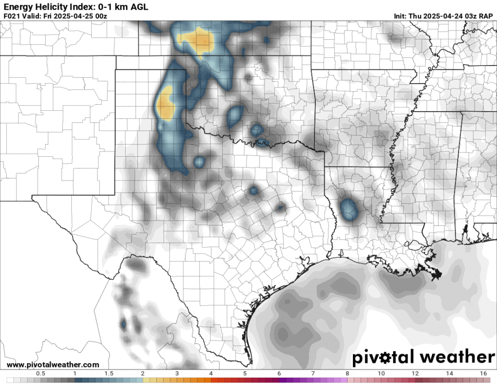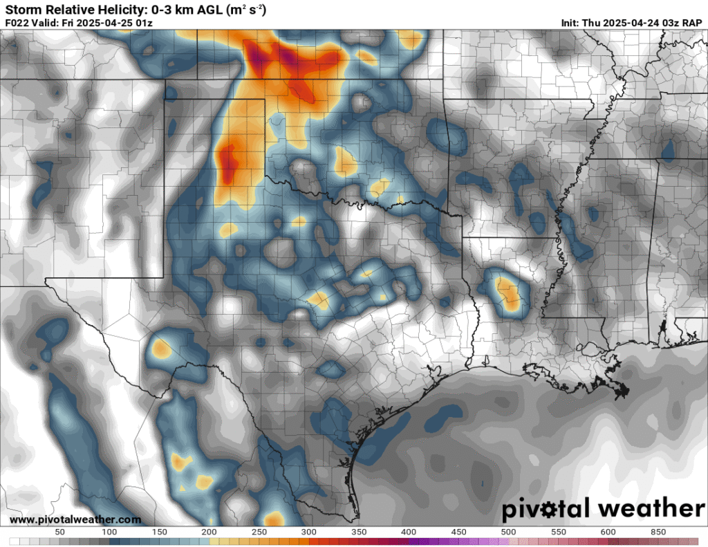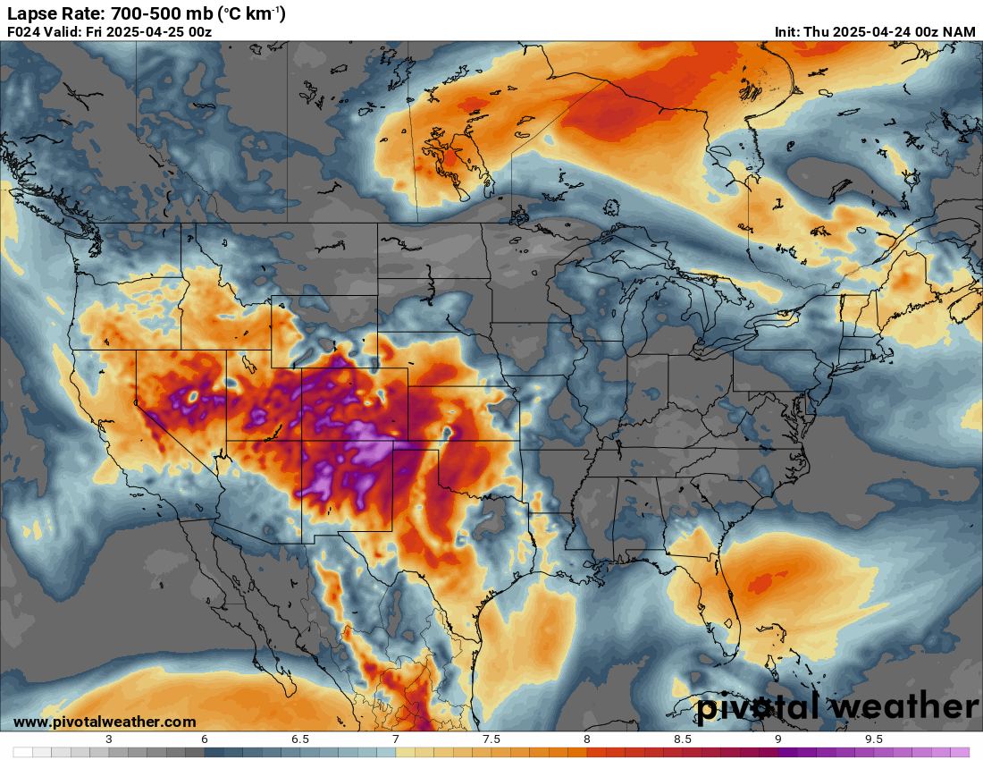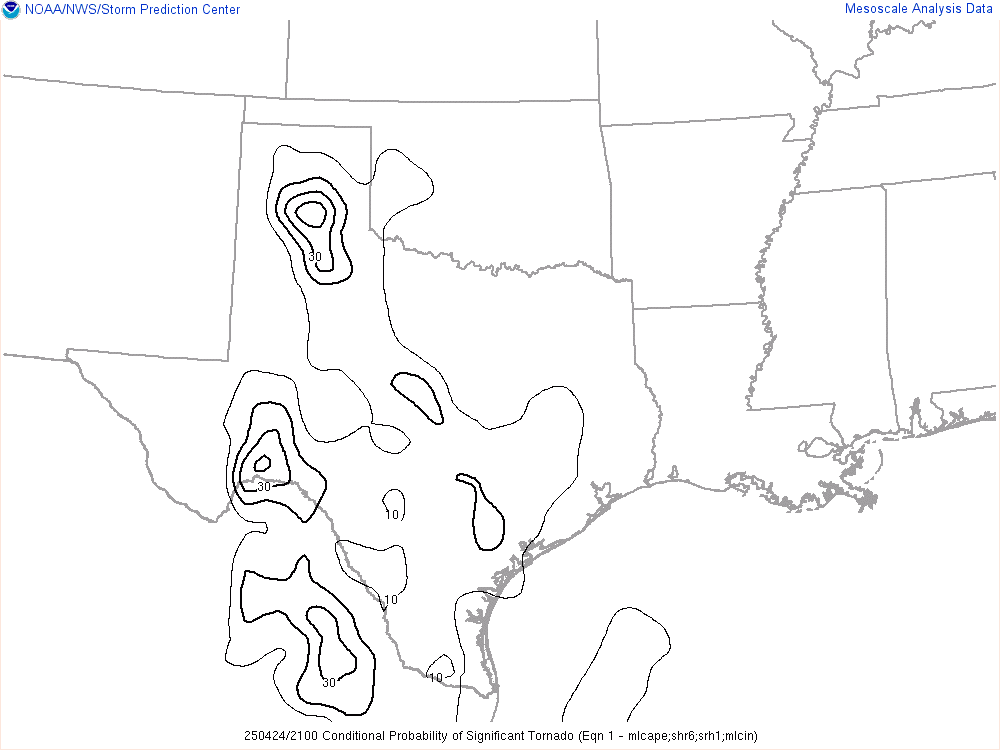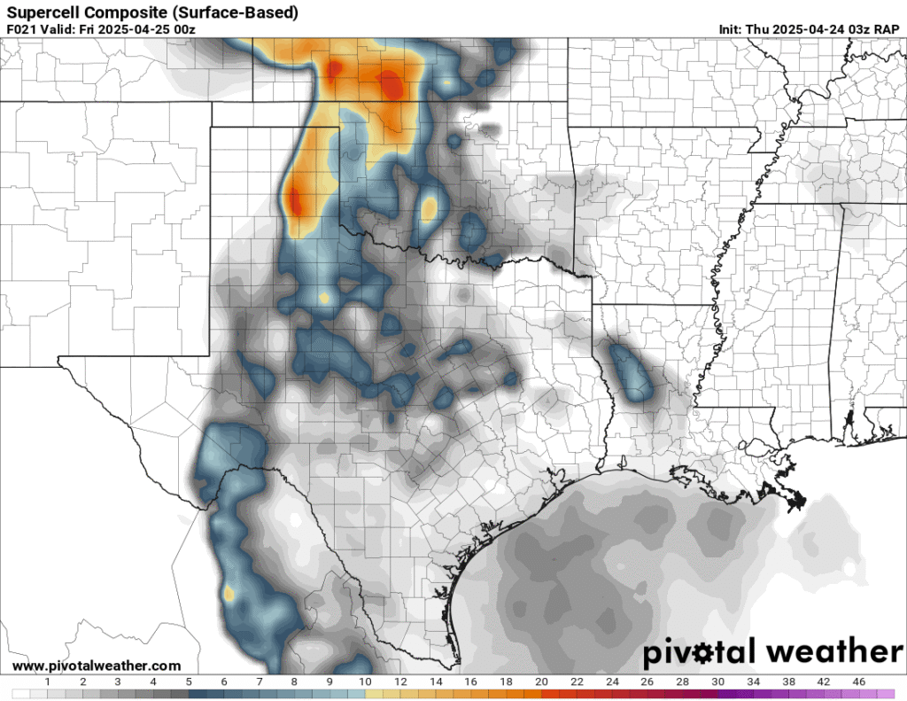 The nadocast was generally on the 24th, showing tornado potential throughout the Texas panhandle and even into Northwest Oklahoma. The later run also depicted potential all the way into Southwest Kansas.