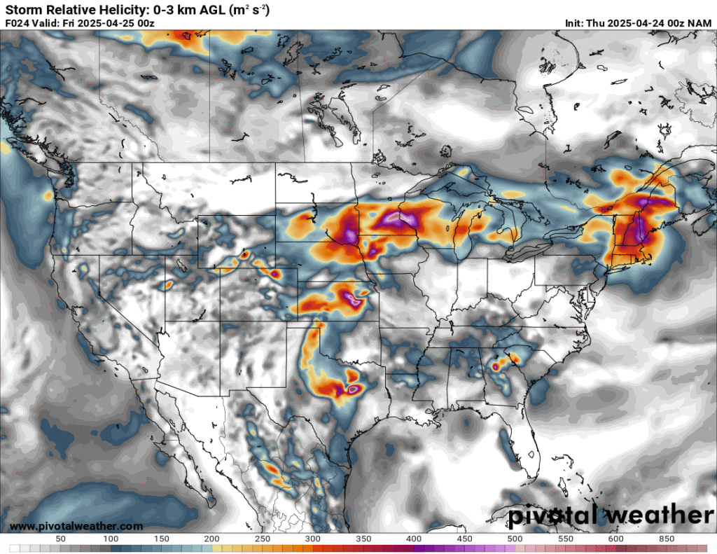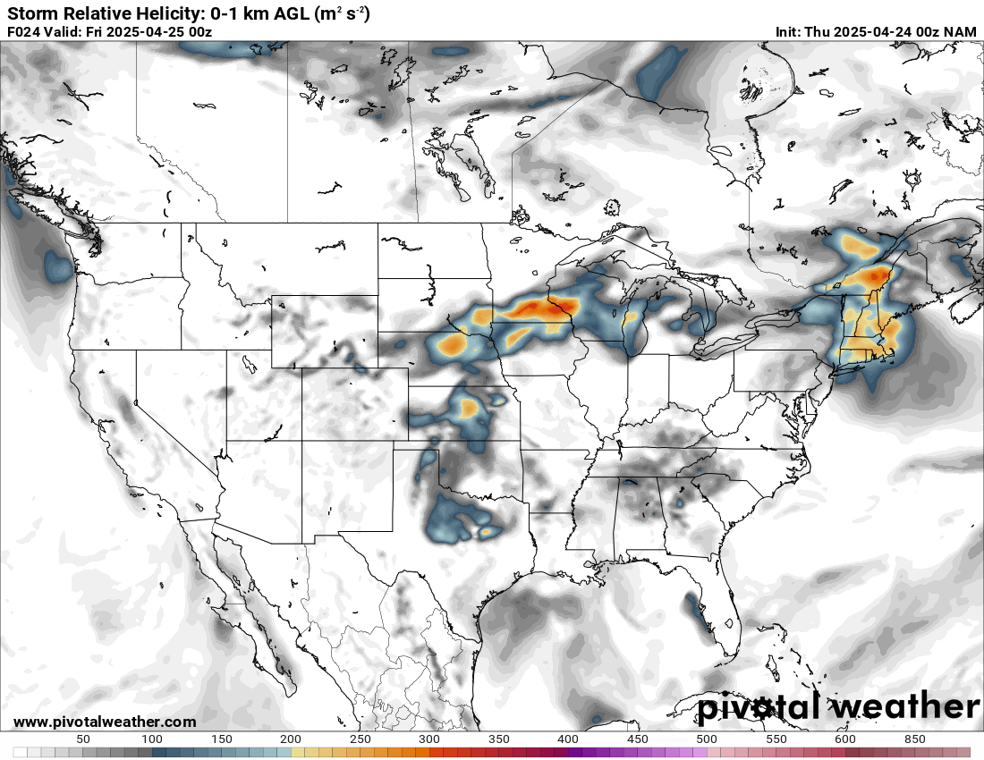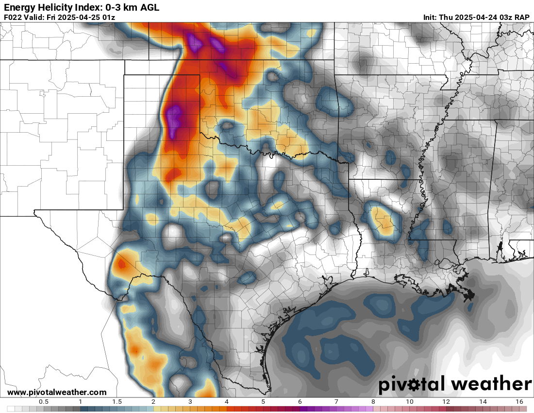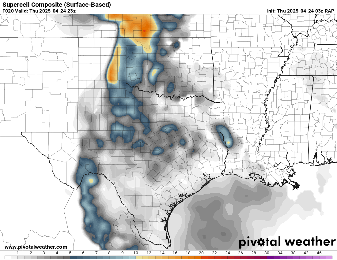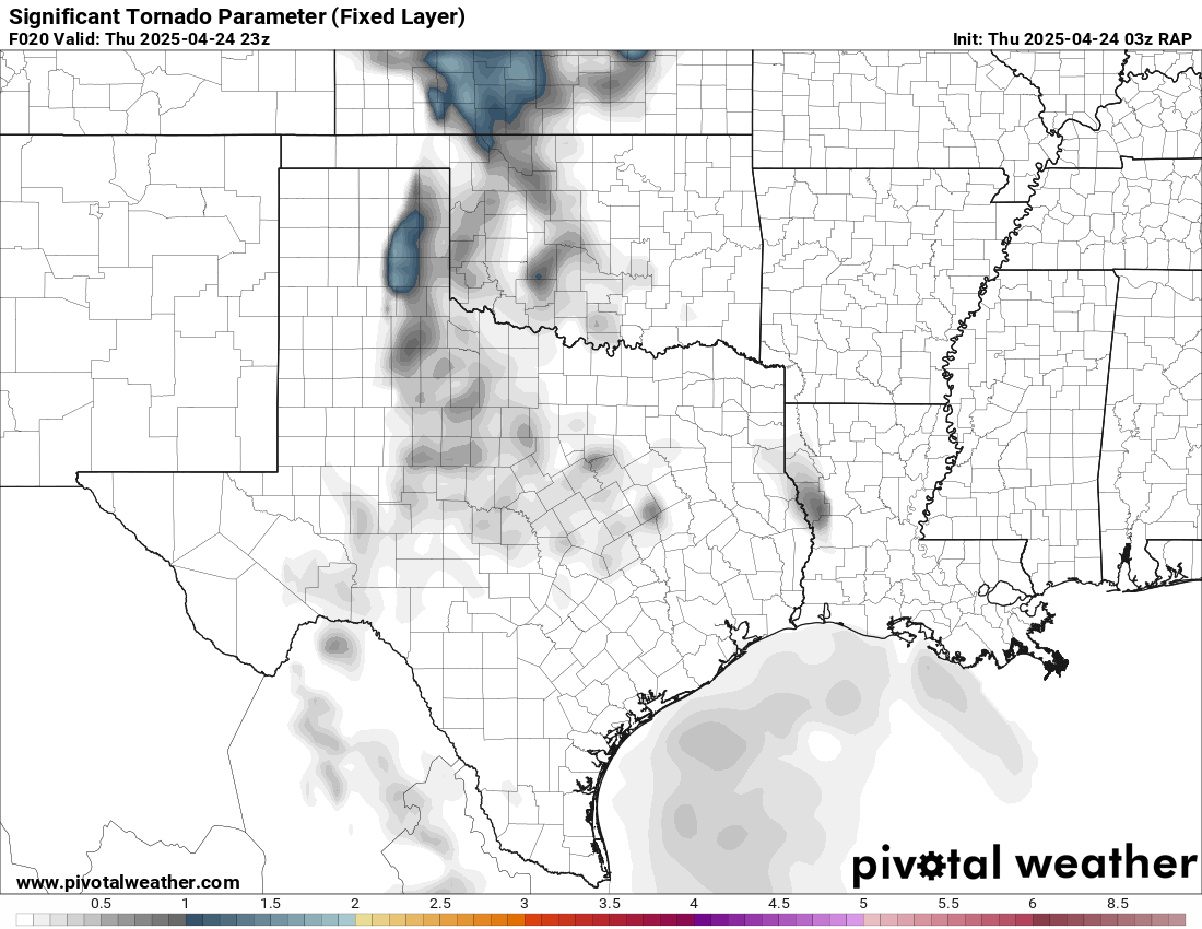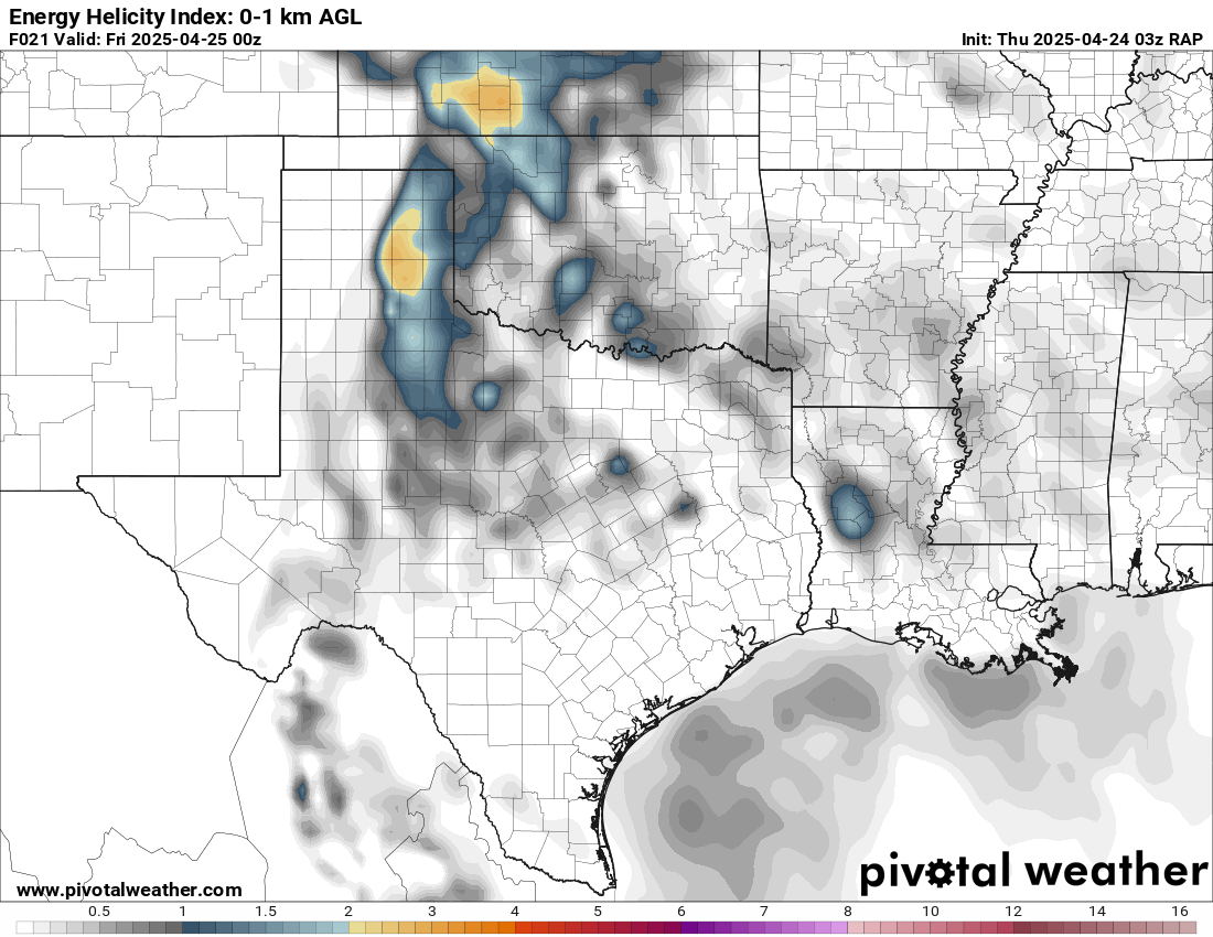 The nadocast was generally on the 24th, showing tornado potential throughout the Texas panhandle and even into Northwest Oklahoma. The later run also depicted potential all the way into Southwest Kansas.