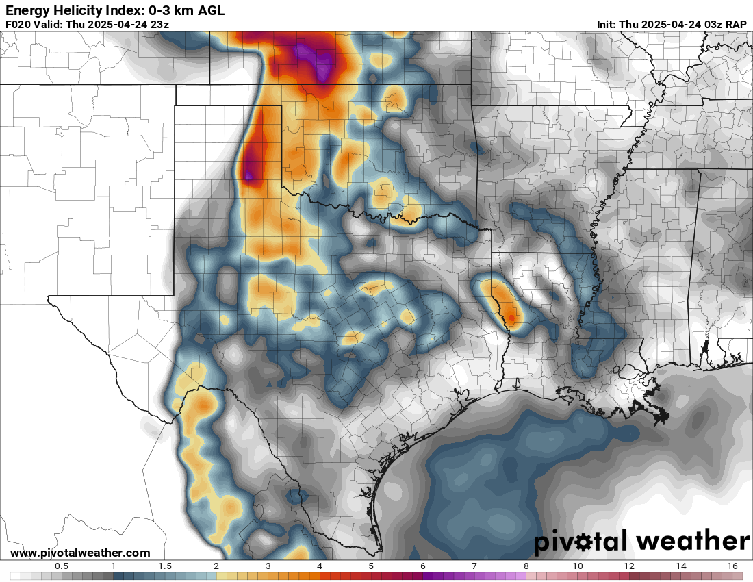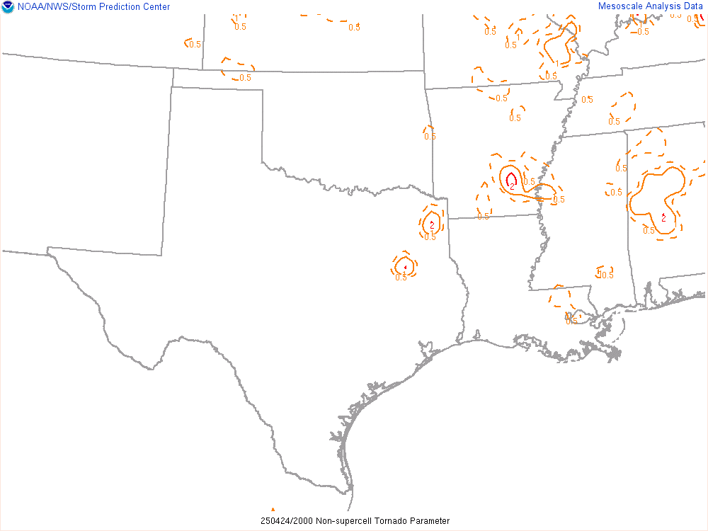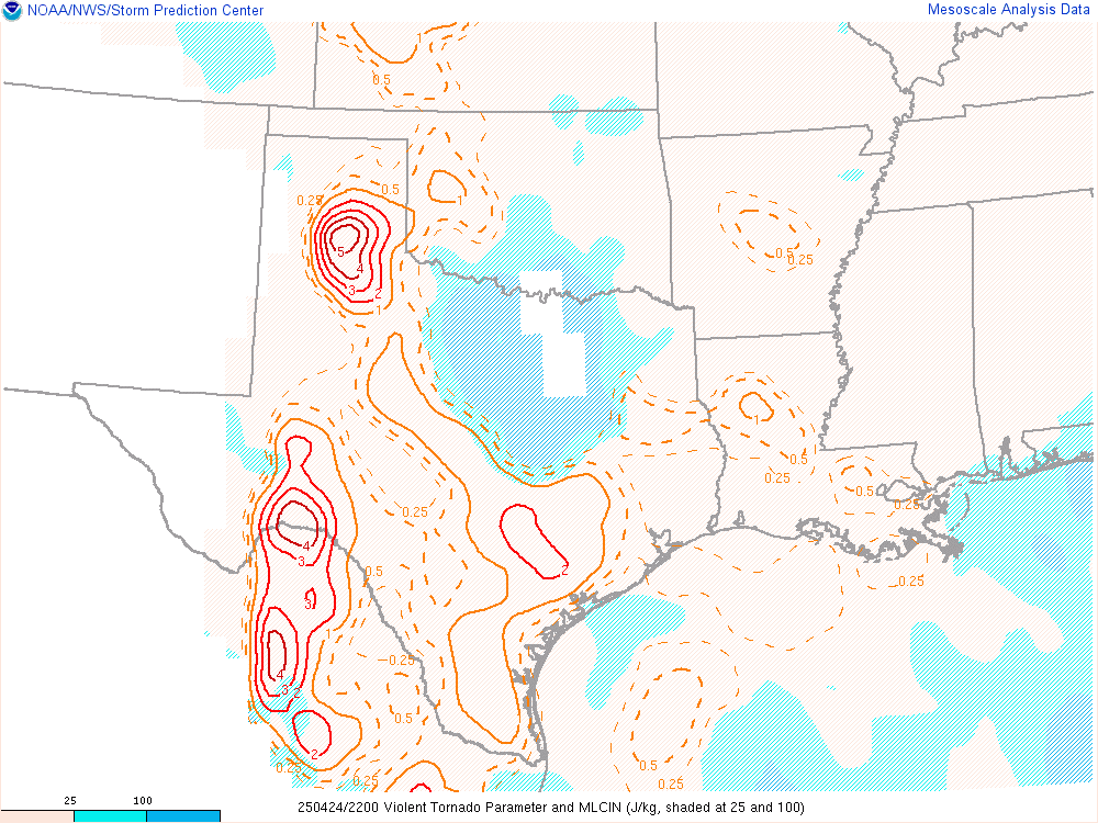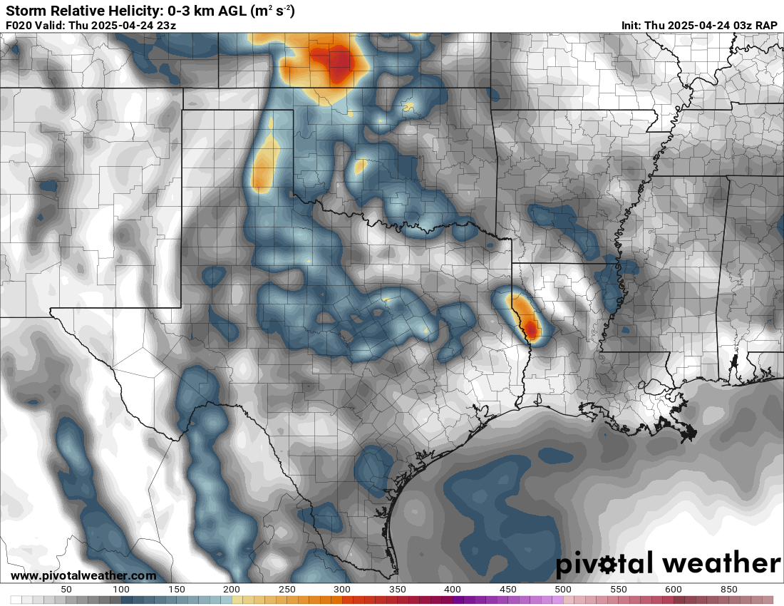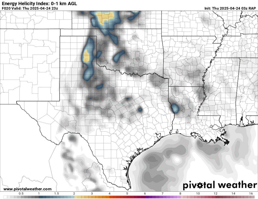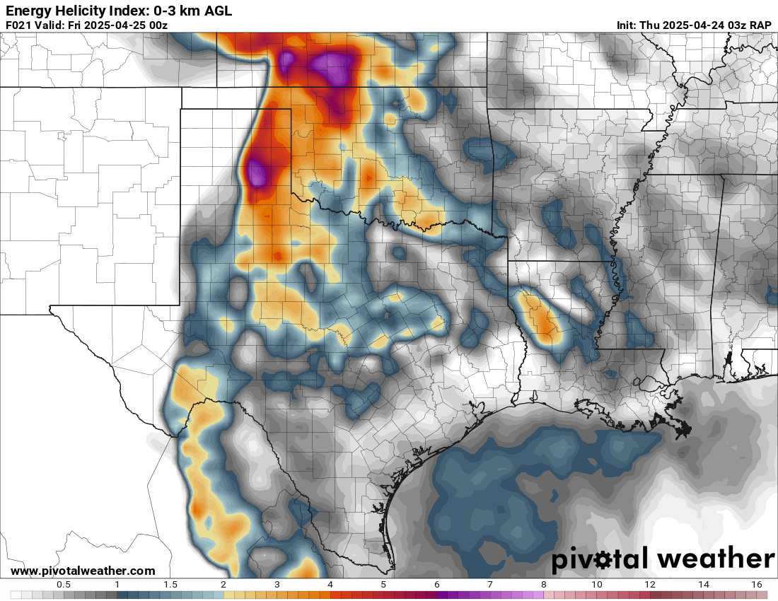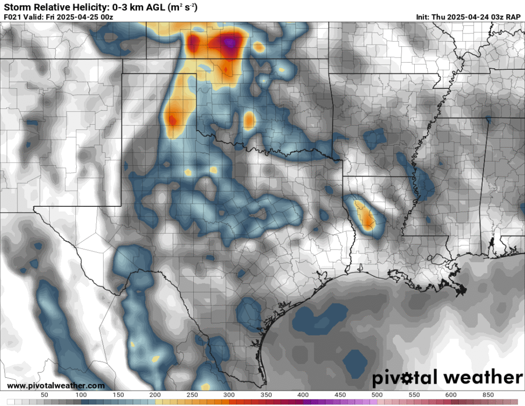 The nadocast was generally on the 24th, showing tornado potential throughout the Texas panhandle and even into Northwest Oklahoma. The later run also depicted potential all the way into Southwest Kansas.