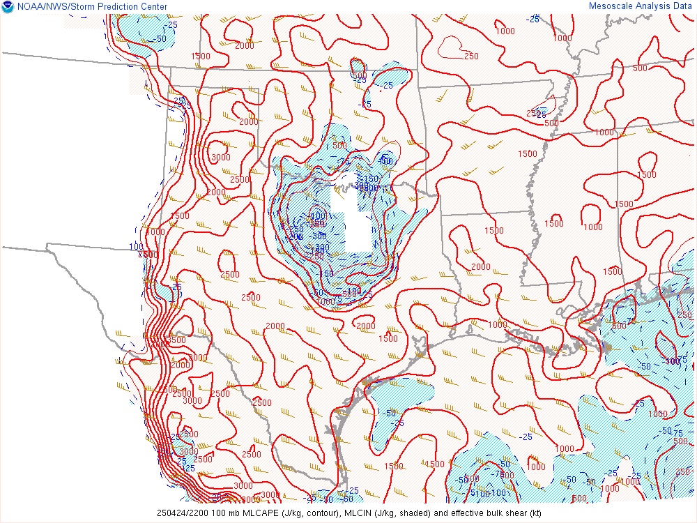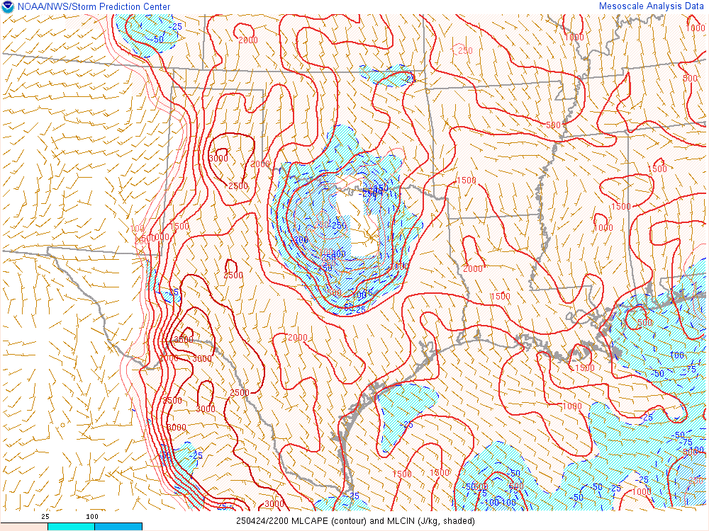 The most important 00Z RAOB was from Amarillo, showing a very good thermal profile and reasonably most environment.