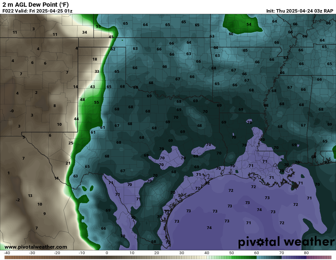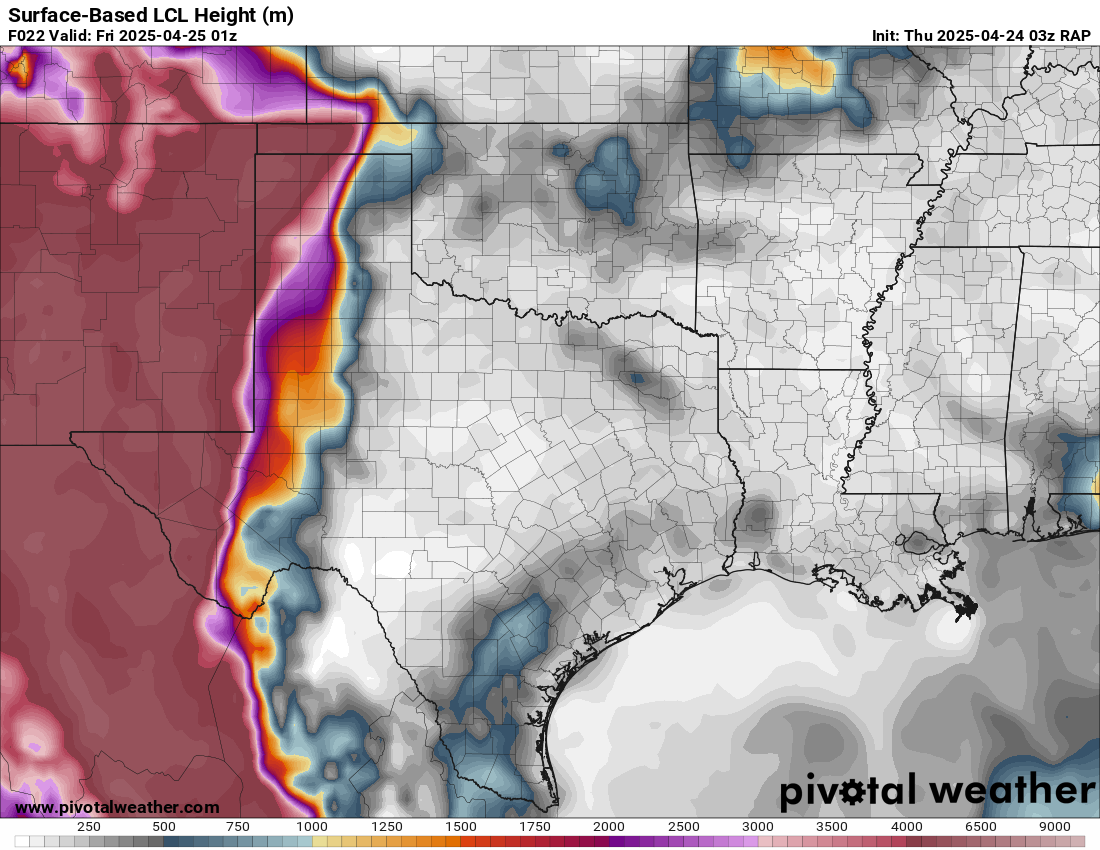 The 03Z RAP showing a similar situation with deep moisture making it to the caprock, with a real stout dryline in the northern Texas panhandle.