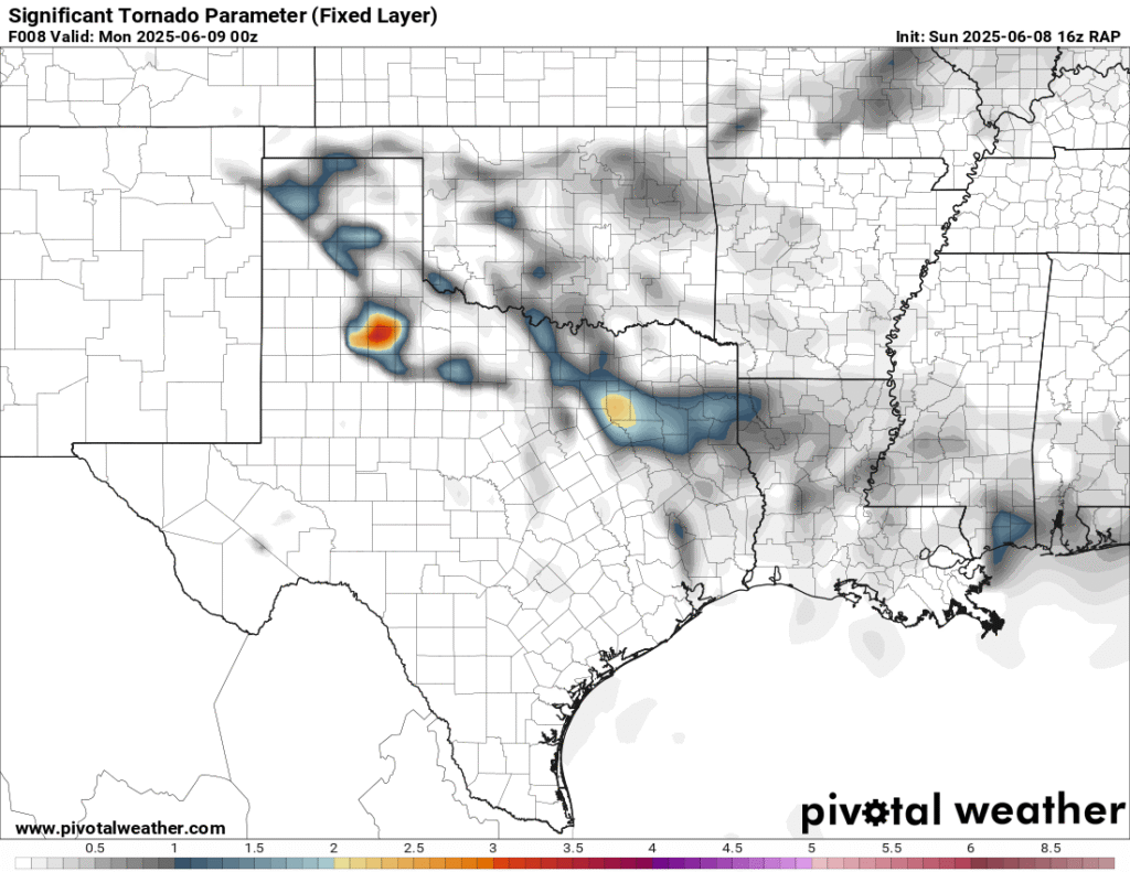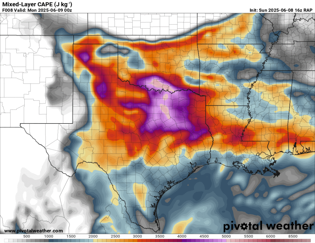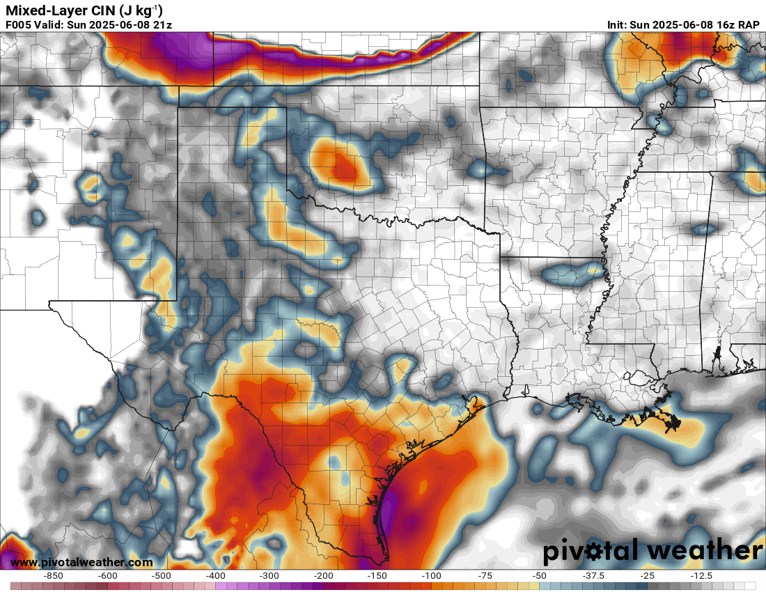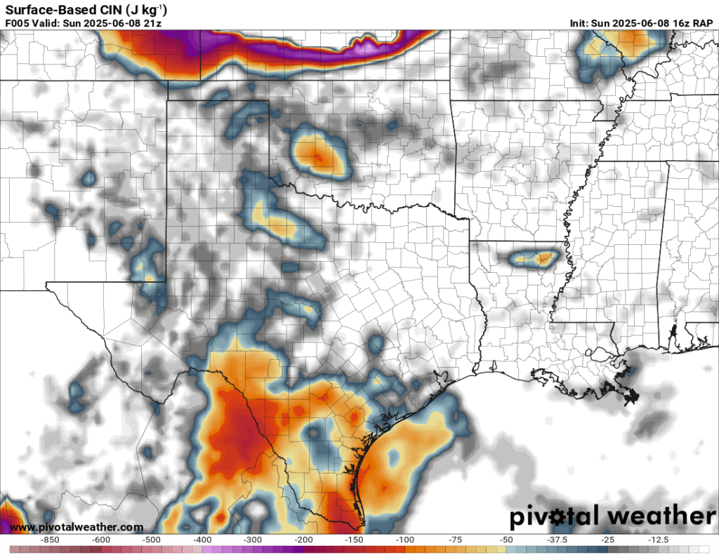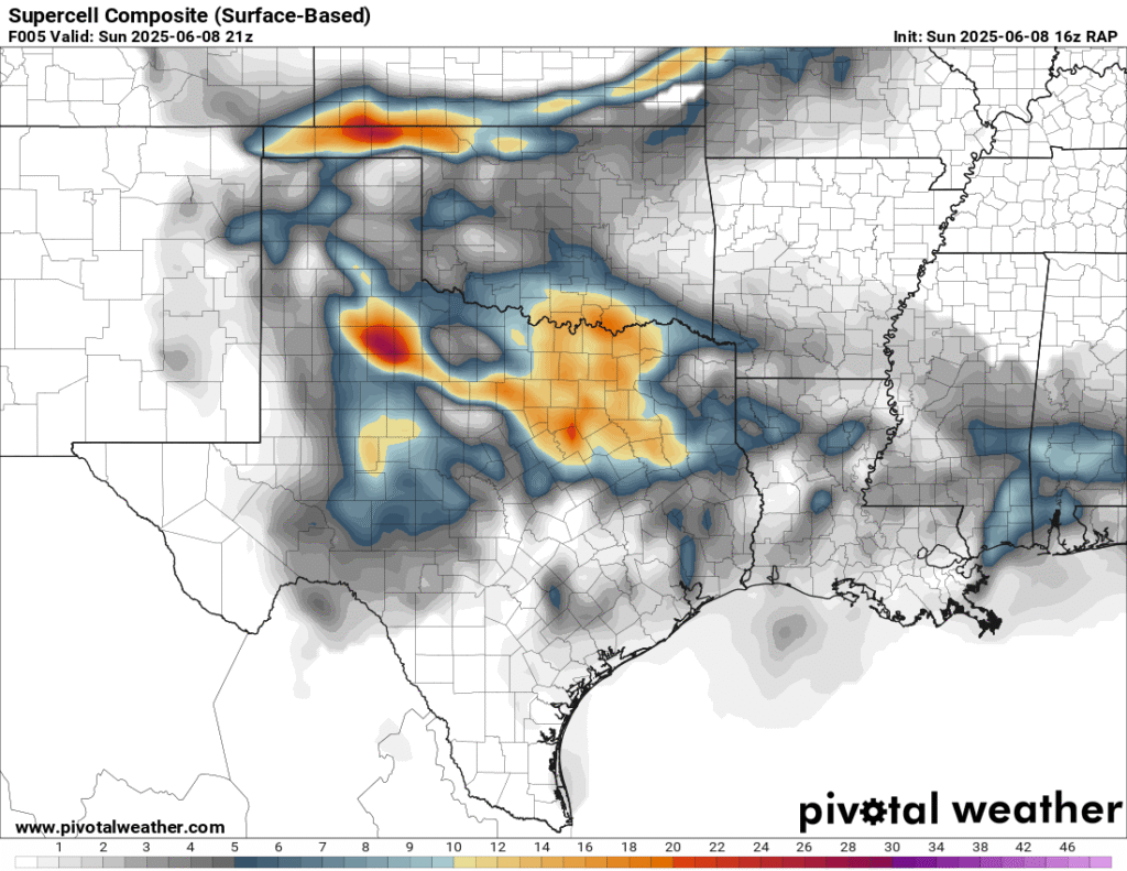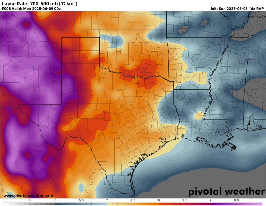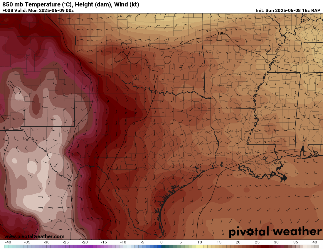 A very unstable atmosphere in place over the Texas panhandle with supercell shear. As it’s June, temperatures are a little high with RAP showing low 90 degree surface temps on the south side of the boundary with 70 degree dewpoints right up against the caprock.