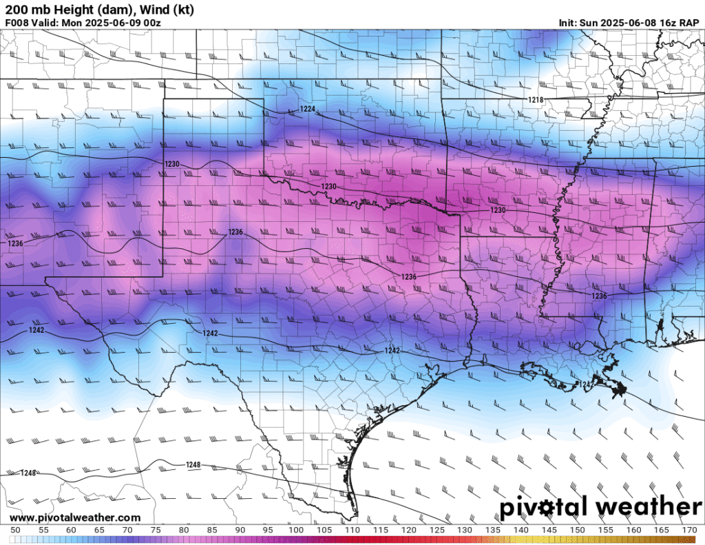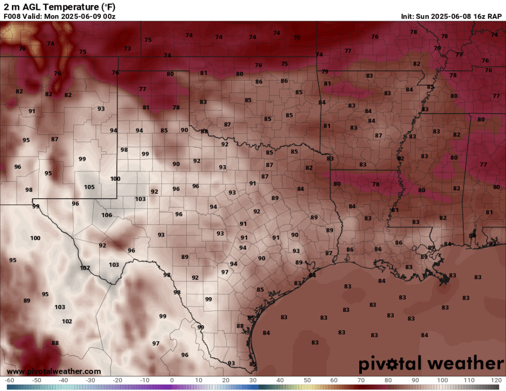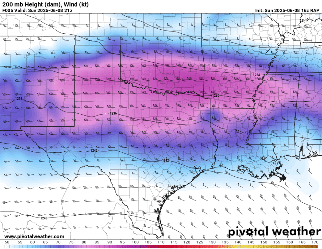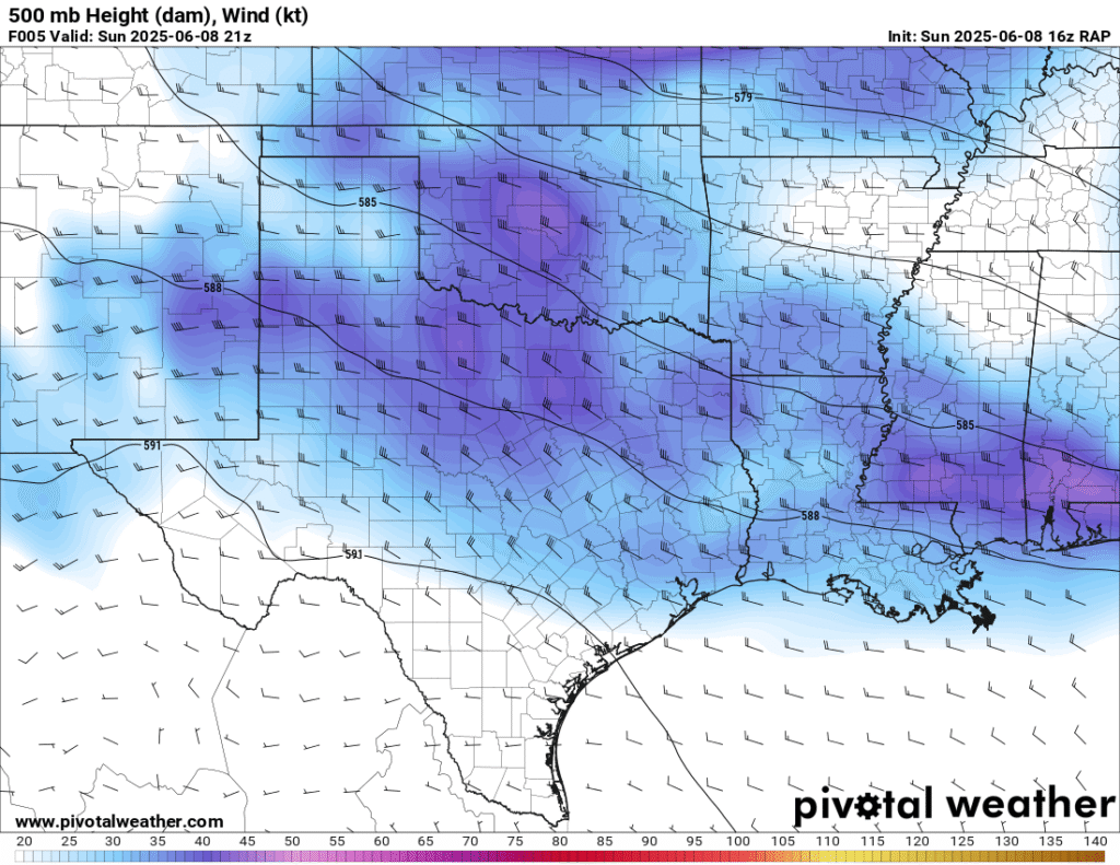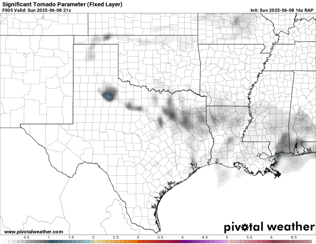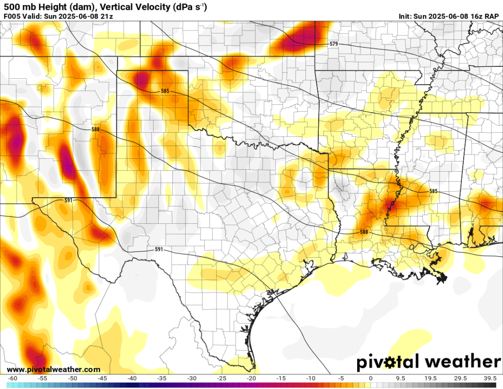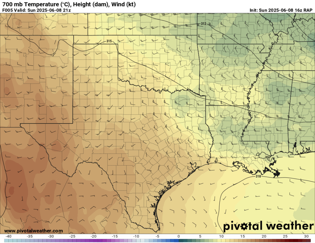 A very unstable atmosphere in place over the Texas panhandle with supercell shear. As it’s June, temperatures are a little high with RAP showing low 90 degree surface temps on the south side of the boundary with 70 degree dewpoints right up against the caprock.
