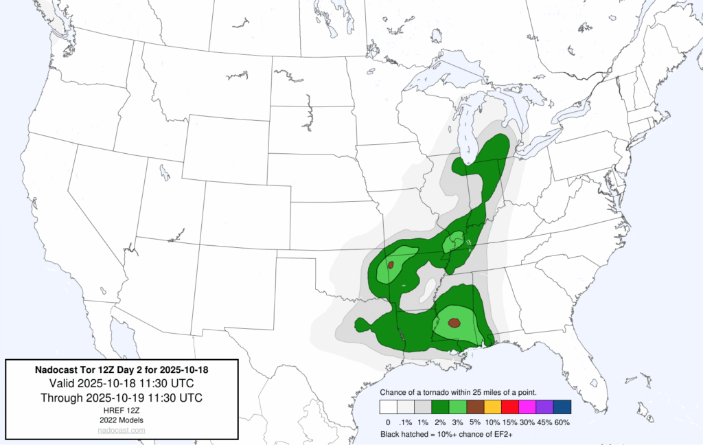 Nadocast was not writing off the area, but painted much higher probabilities further north and east, which made sense.