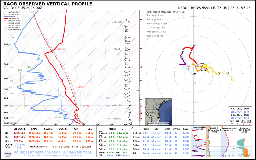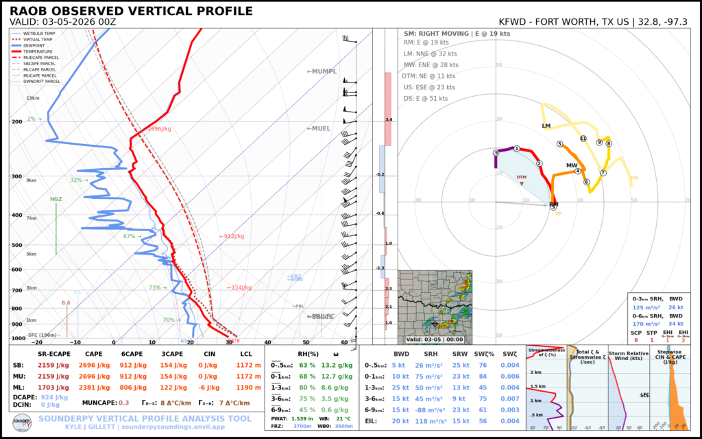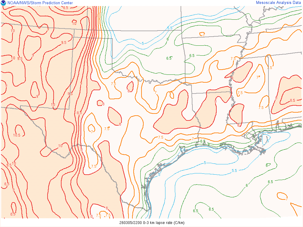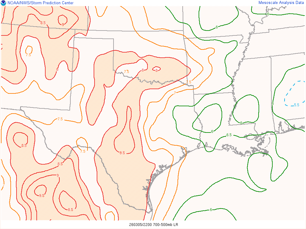 Evening soundings on March 4th showed reasonably good moisture at BRO/CRP/LCH/SHV/FWD/DRT stations and very steep lapse rates at MAF/EPZ/ABQ/AMA. The devil would be in the details as these ingredients mix over the great plains on the 5th