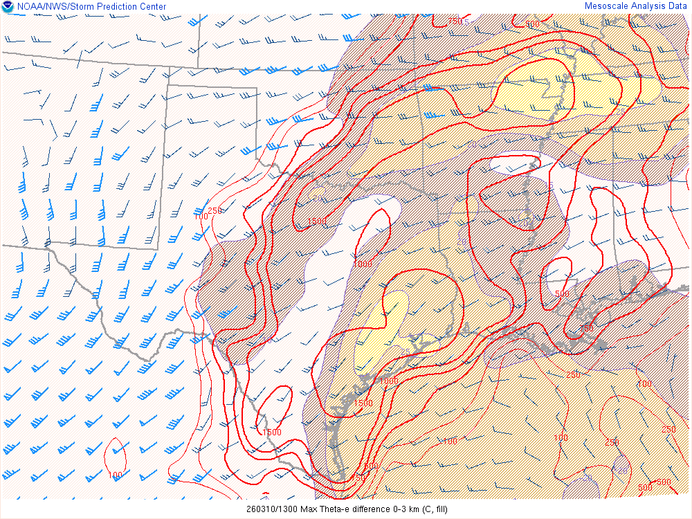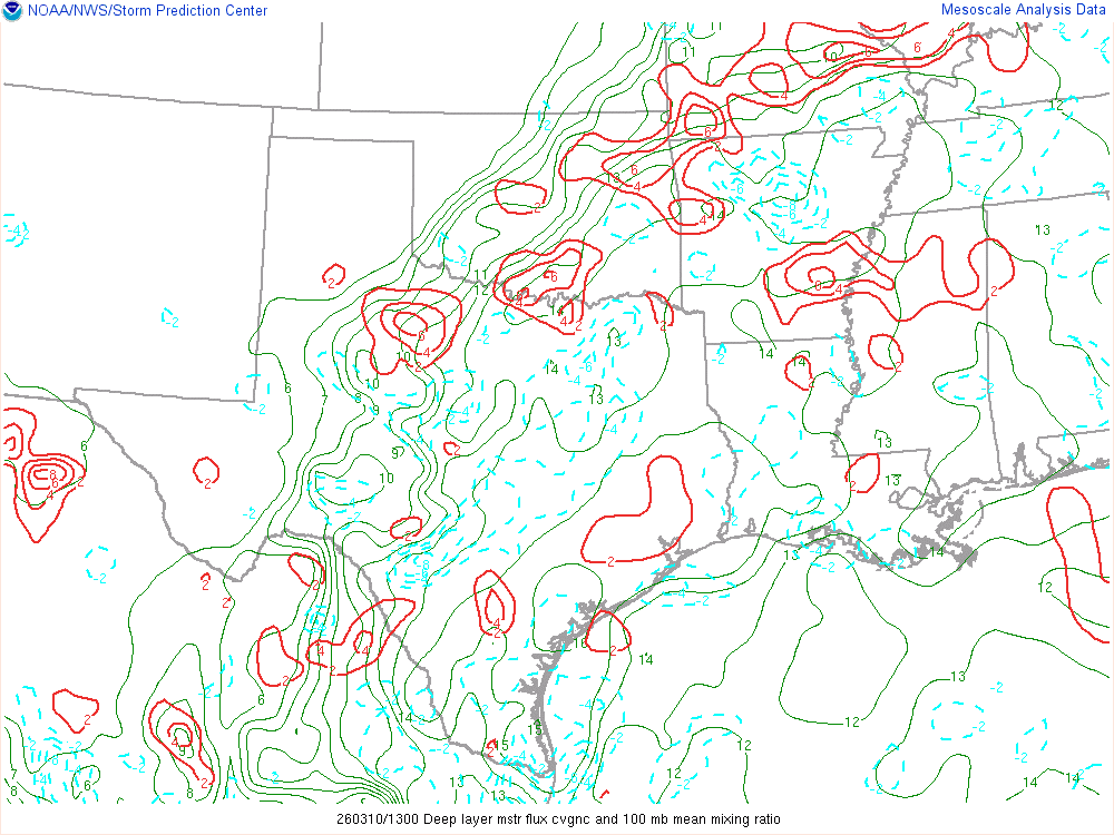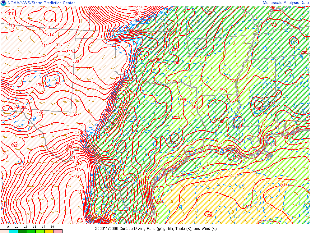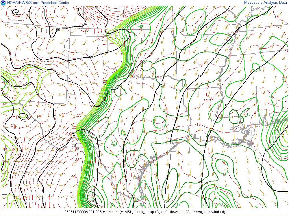 Moisture was very high for March. Dewpoints in the mid 60s were in place at 8am across the eastern 1/2 of Oklahoma.