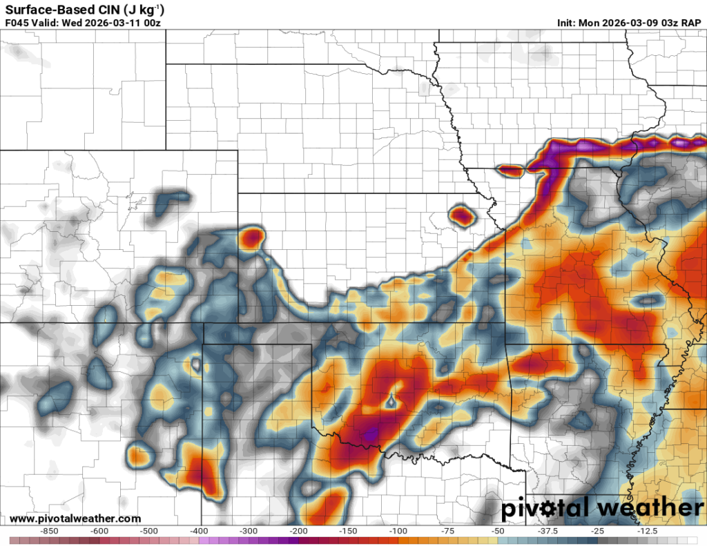 Running through the RAP, it had some weird chunk out of moisture/instability in Central Oklahoma. It was assuming there would be convection ongoing that would clear the warm sector. If that’s the case, this would be more in Eastern Oklahoma.